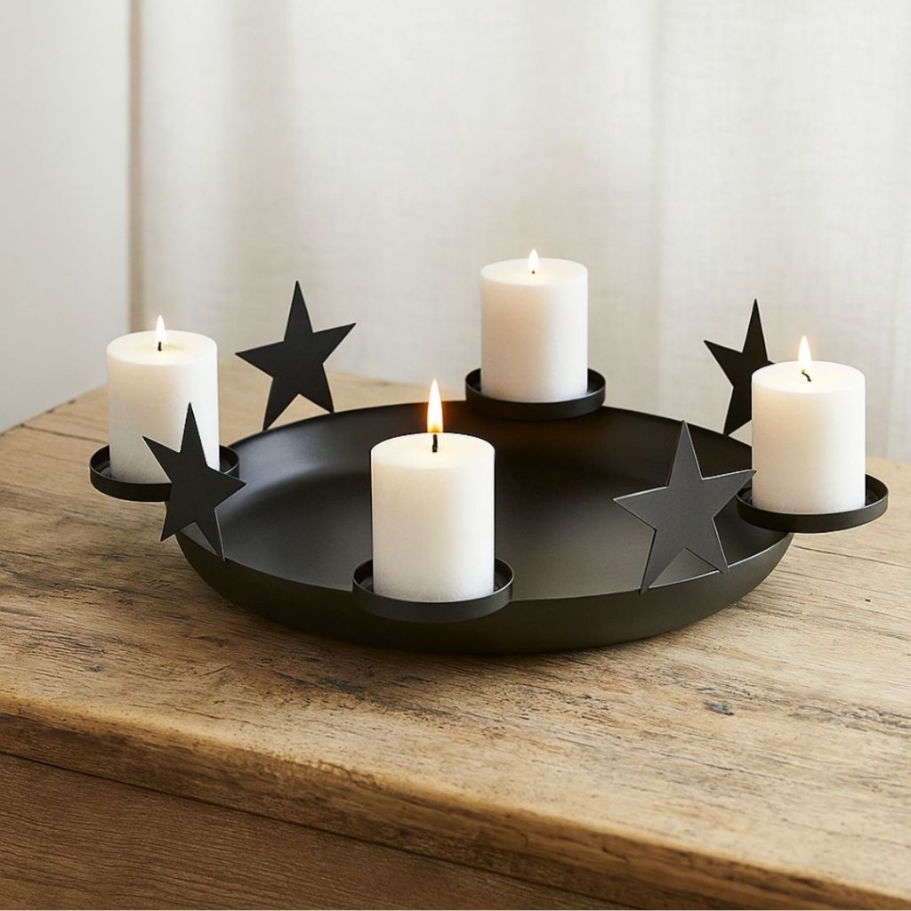 - Kovový adventní svícen s hvězdami je jednoduchý, elegantní a velice kouzelný svícen v tradičním provedení.