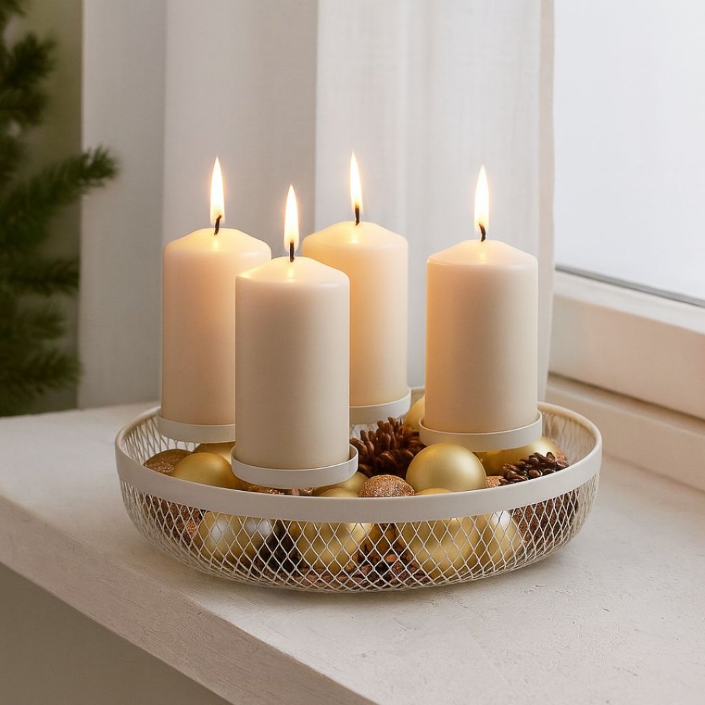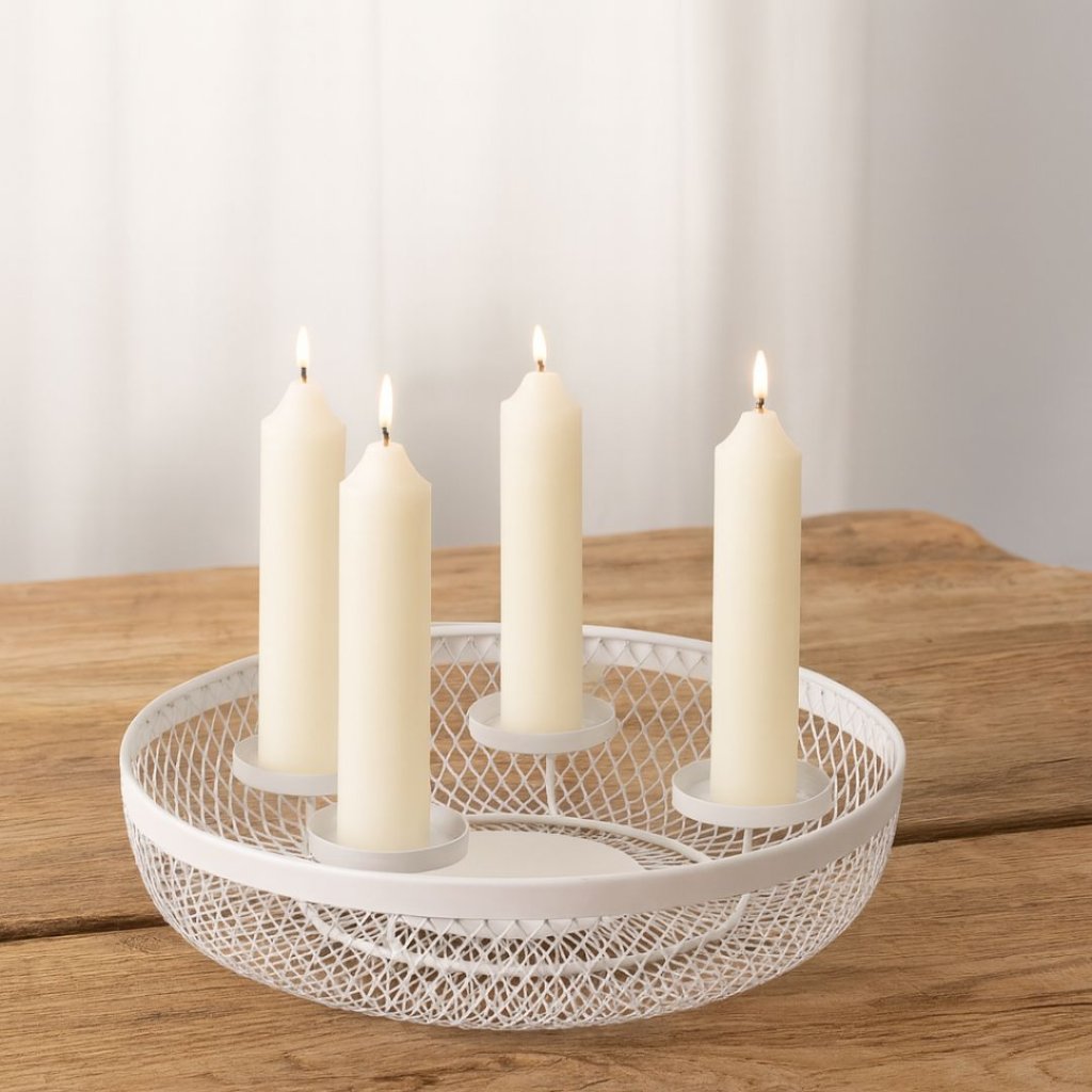 - V jednoduchosti je krása. Tento bílý kovový svícen je minimalistickým, a přitom hřejivým doplňkem vašeho adventního stolu. Díky jemnému designu a čisté bílé barvě krásně ladí do skandinávského či rustikálního interiéru.