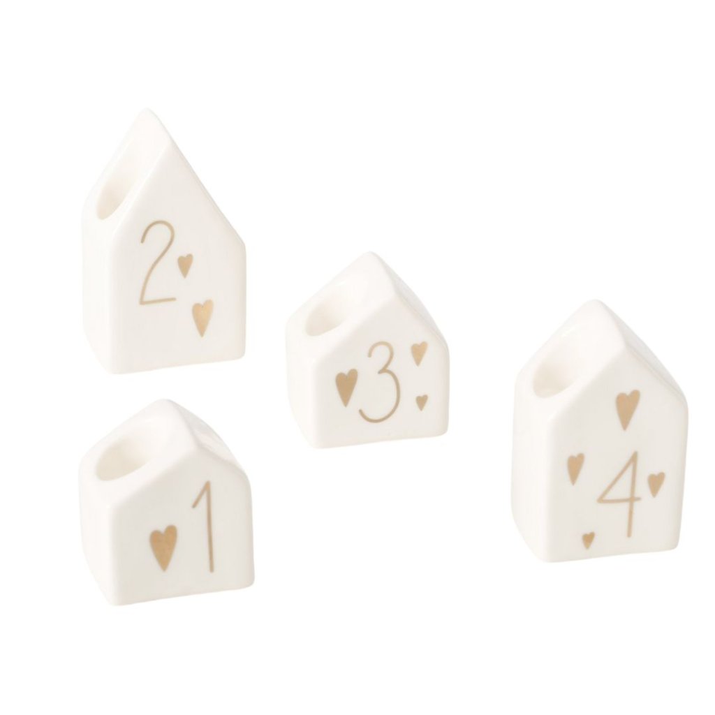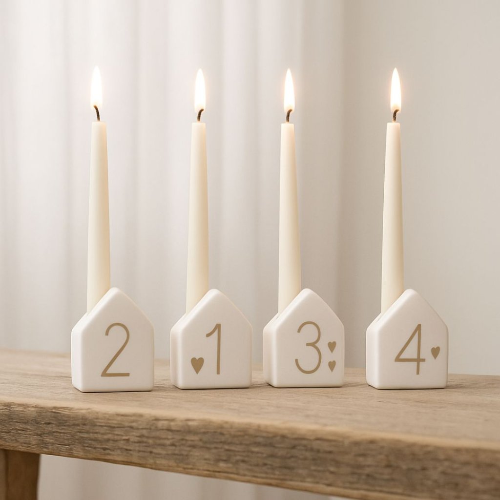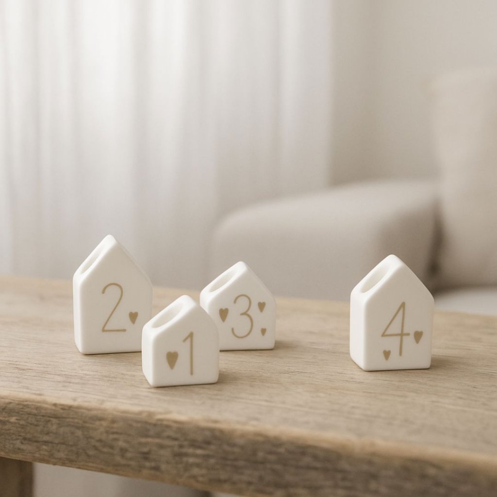 - Sada čtyř elegantních keramických svícnů ve tvaru čísel 1, 2, 3 a 4 s jemným zlatým dekorem🤎