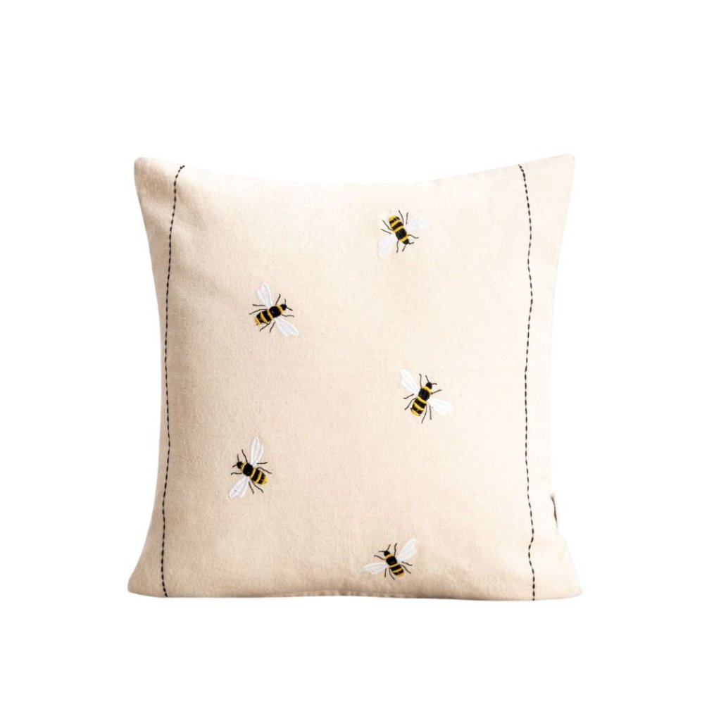 Krémový bavlněný povlak s jemnou výšivkou včelek přináší do interiéru hravý, ale stále čistý a přírodní detail. Decentní barevnost působí klidně a snadno se kombinuje s dalšími textiliemi i dřevěnými doplňky.