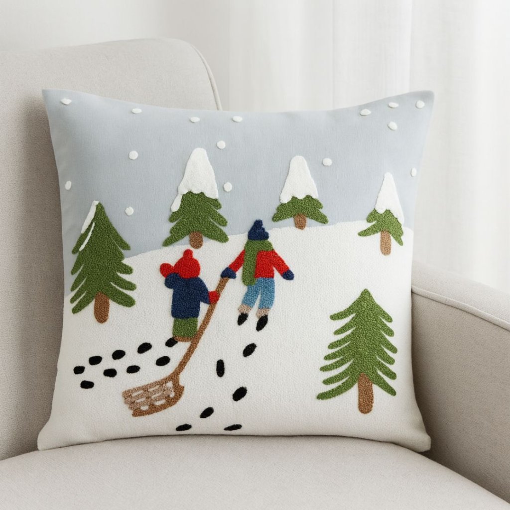 - Vneste do svého domova kouzlo zimní atmosféry s tímto jedinečným povlakem na polštář. Hebký povrch v bílém odstínu doplňuje hravý zimní motiv dětí, které si užívají zimních radovánek. Perfektní doplněk pro zimní sezónu, který zahřeje na pohled i dotek.