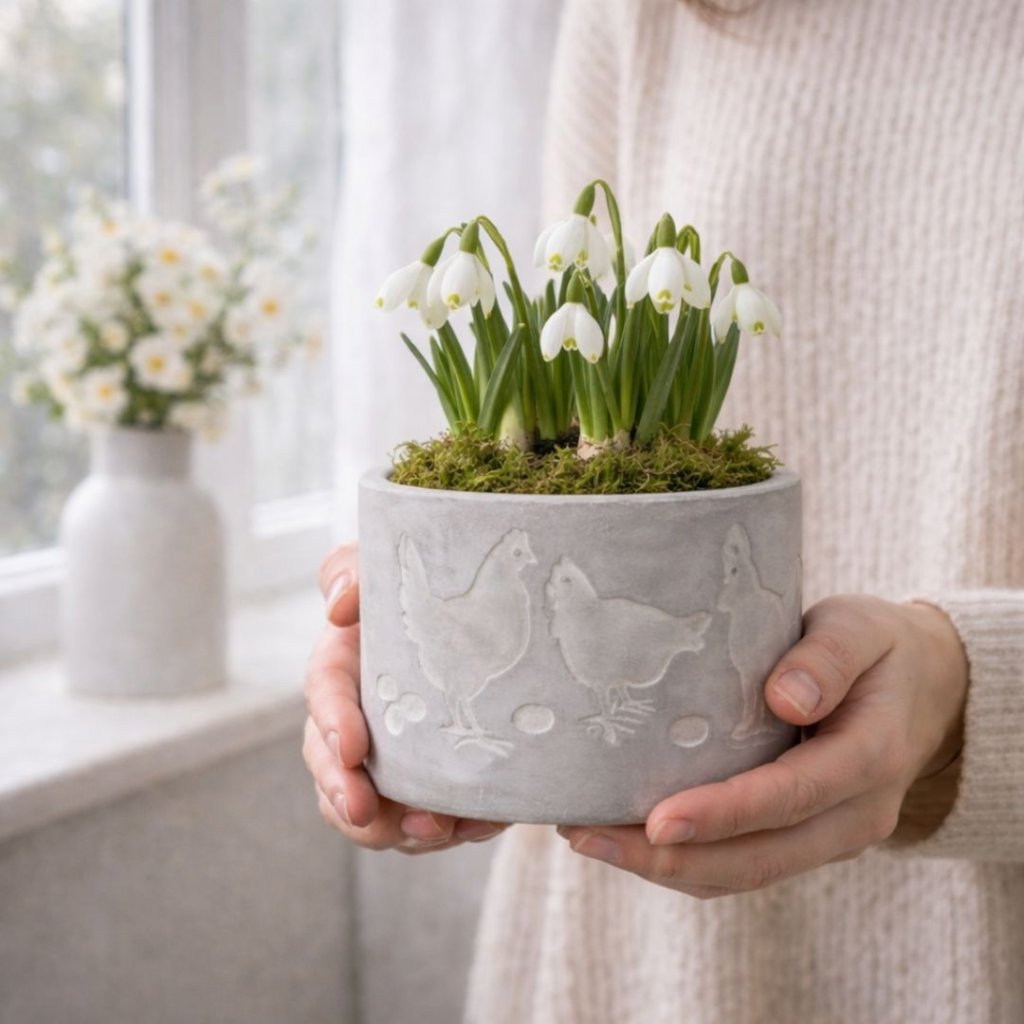 - Oživte své interiéry i exteriéry tímto jedinečným betonovým obalem na květiny s jarním, velikonočním motivem.