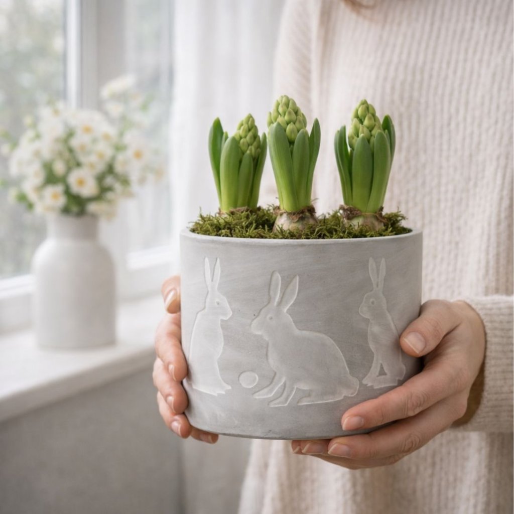 - Oživte své interiéry i exteriéry tímto jedinečným betonovým obalem na květiny s jarním, velikonočním motivem.