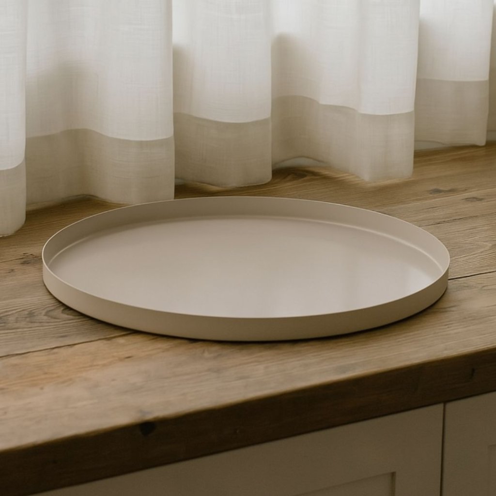 - Béžový kovový podnos je stylový a praktický pomocník pro váš domov.
