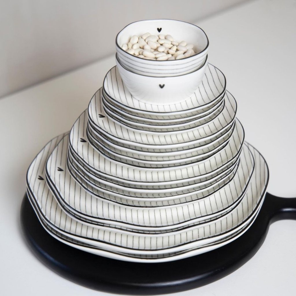 Keramický talíř se srdcem a jemnými proužky je plný elegance a jednoduchého stylu. Při vašem stolování bude vynikat a pohled na něj bude vždy radostí. Opět se potvrzuje krásný design od značky Bastion Collections
