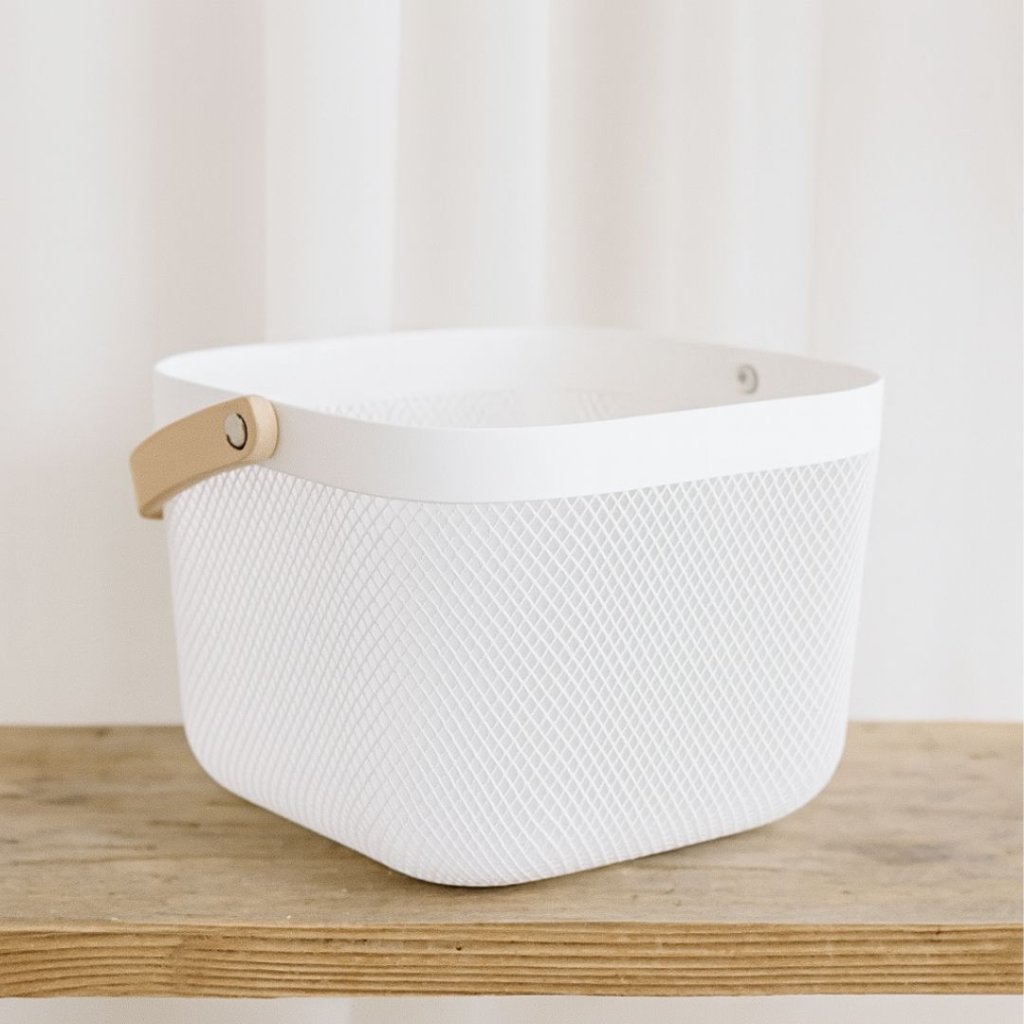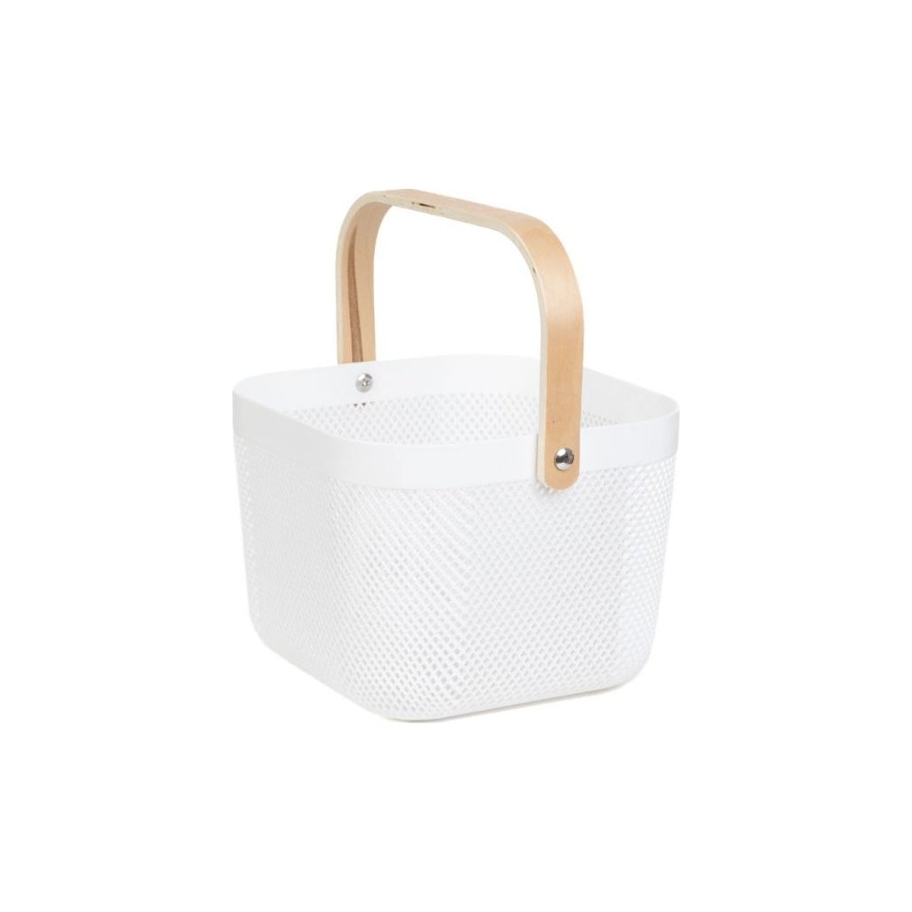 - Minimalistický a praktický doplněk do každé domácnosti. Tento bílý košík je vyroben z kvalitního plastu a doplněn elegantní dřevěnou rukojetí, která mu dodává přírodní nádech. Skvěle poslouží na ukládání drobností v kuchyni, koupelně či pracovně. Díky svému univerzálnímu designu zapadne do interiérů ve skandinávském i rustikálním stylu.