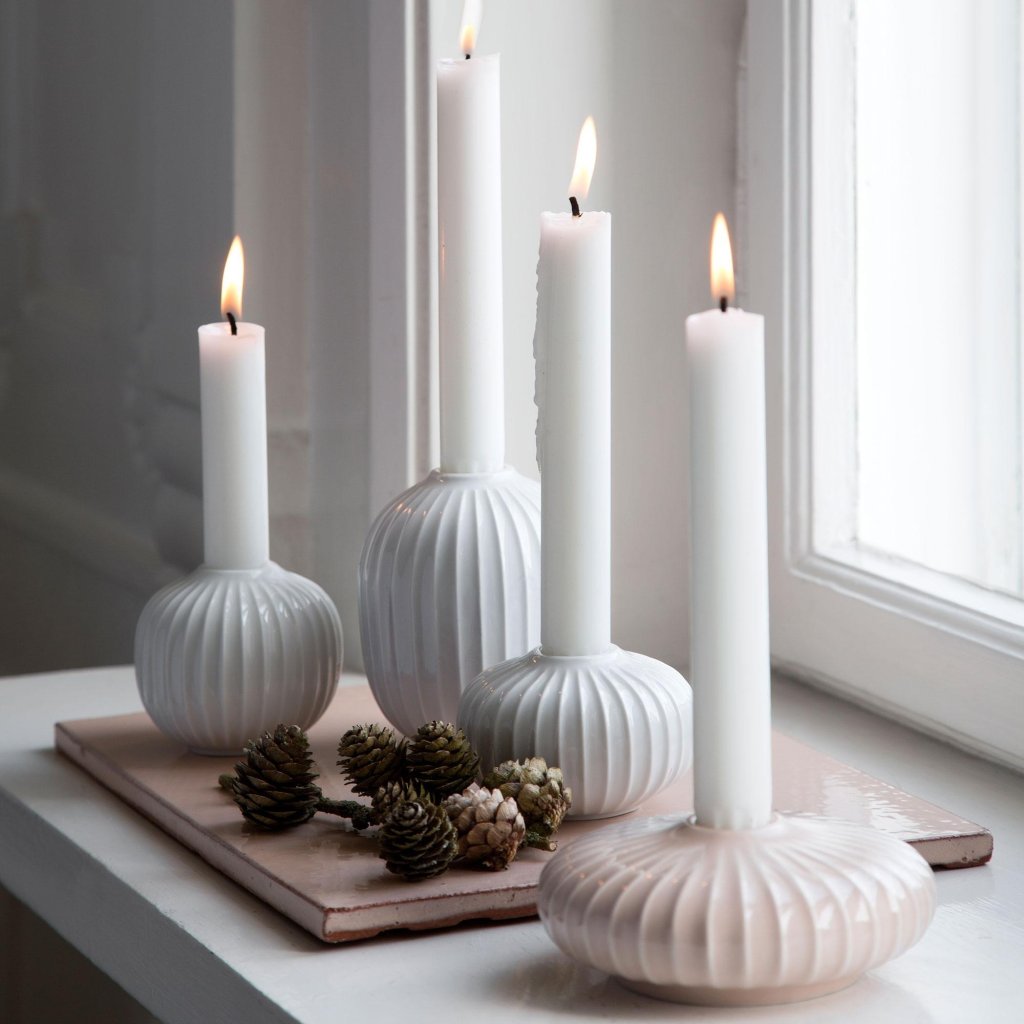Určitě všichni znáte ten pocit když se setmí a večer příjde čas relaxu, třeba při čtení knížky nebo s partnerem při lahvince dobrého vína, a samořejmě svíčkách, které dodávají tu správnou atmosféru pohody a klidu. Bílý porcelánový svícen z kolekce Hammershoi všechny tyto pocity ještě znásobí. Dokonalý design, kvalitní a originální zpracování díky ruční výrobě vše perfektně doladí. V nabídce najdete několik velikostí a díky tomu si můžete vytvořit "svícnový ráj" a vše vyladit do sebemenšího detailu.