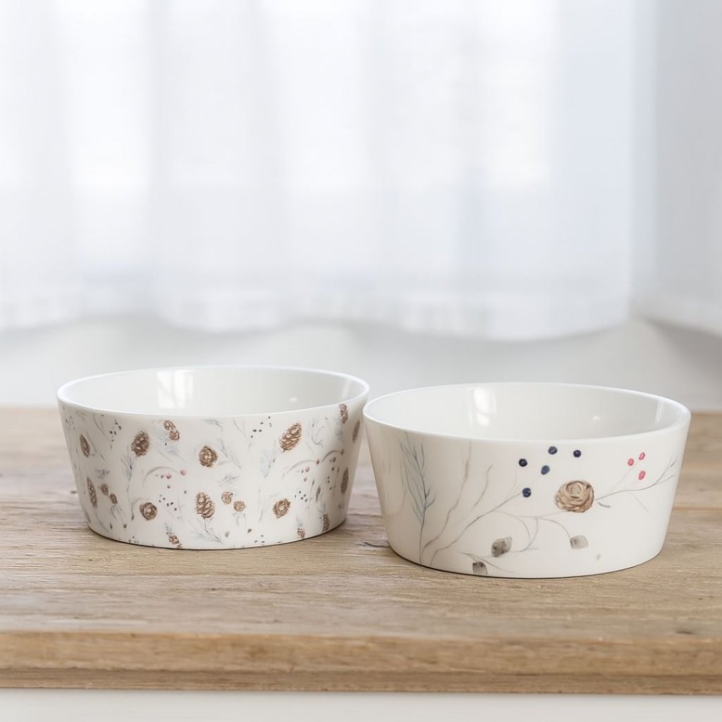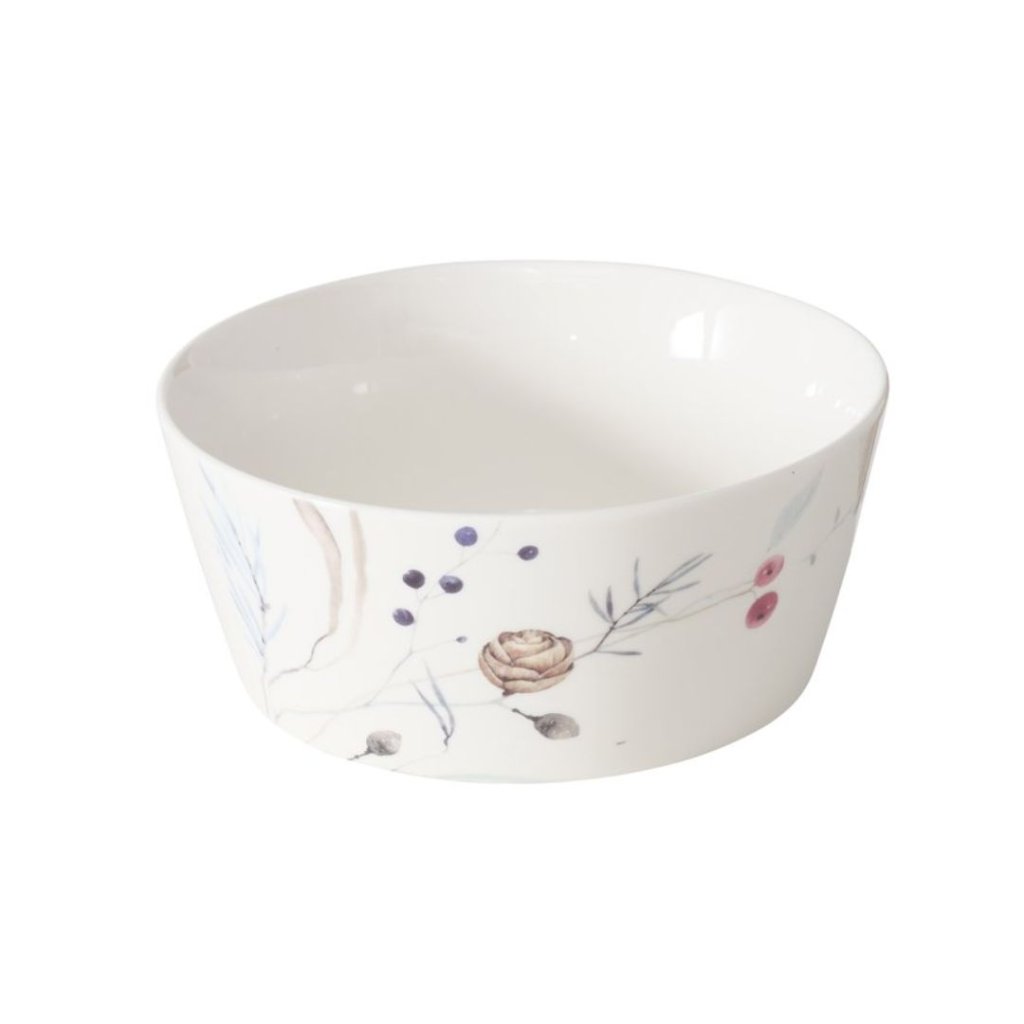 - Jemný věnečkový motiv s větvičkami, bobulemi a šiškami působí jako akvarelová malba a dodává talíři osobitý šarm.