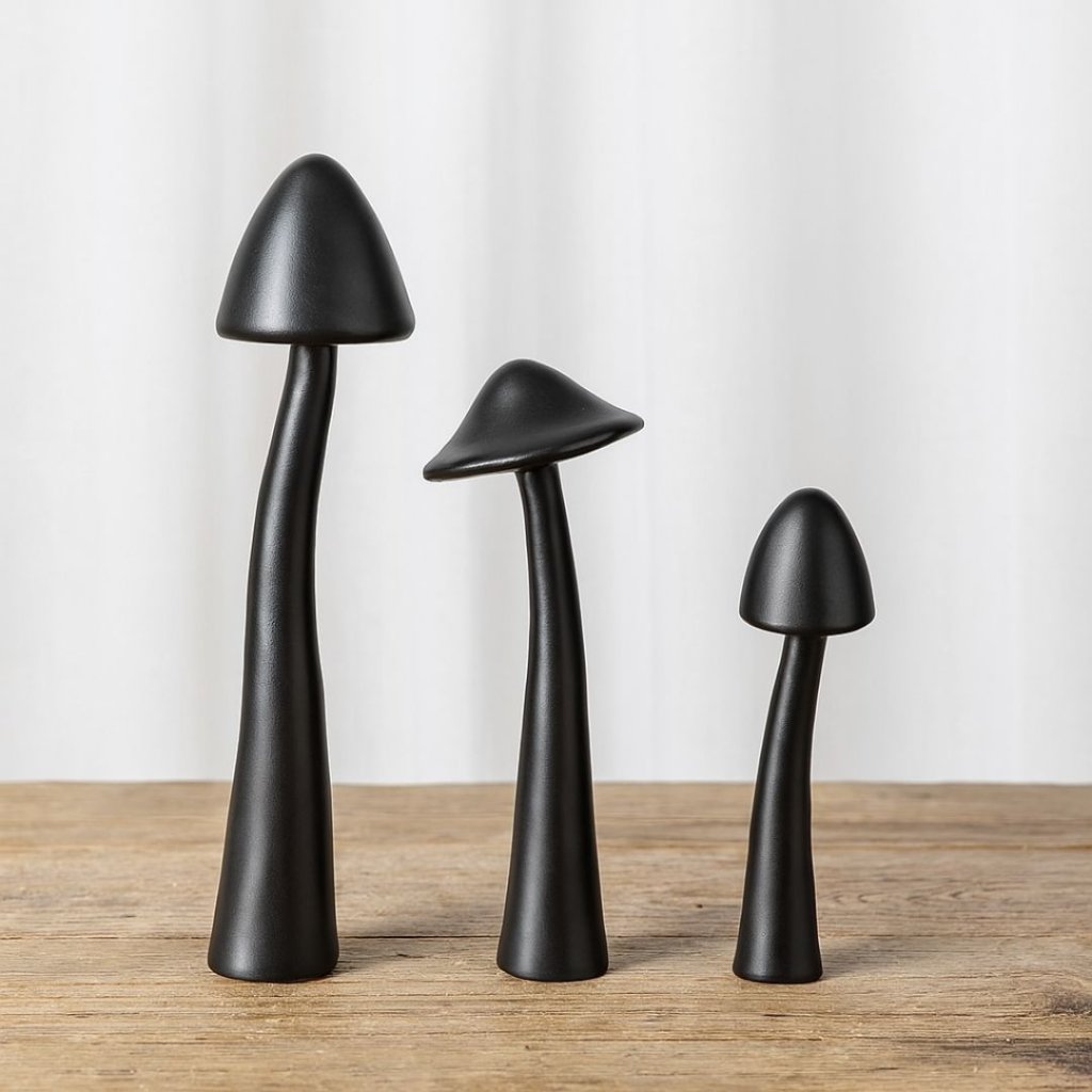 - Oživte svůj prostor tajemstvím a elegancí s touto černou porcelánovou dekorací ve tvaru houby Mushroom.