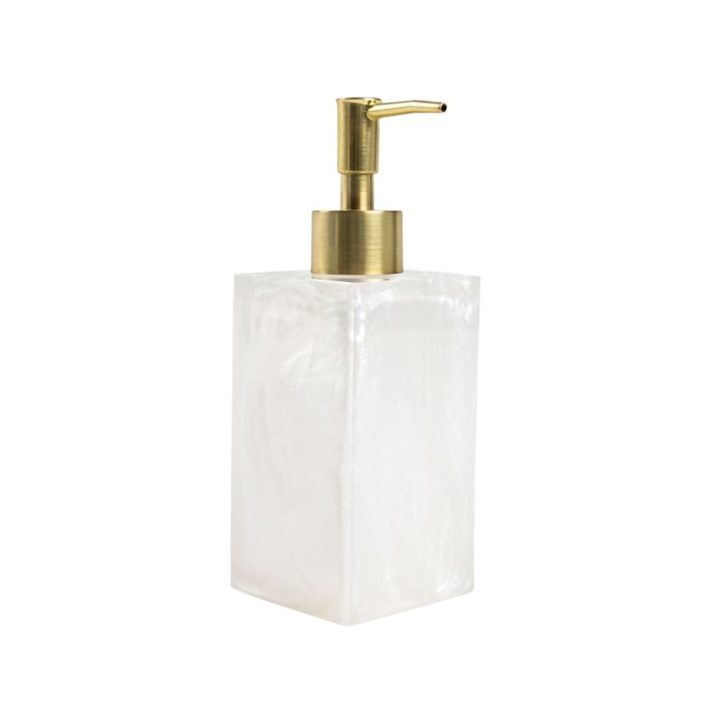 - Elegantní a praktický doplněk do vaší koupelny nebo kuchyně. Tento dávkovač je vyroben z kvalitního plastu s jemným perleťovým leskem a doplněn o stylovou zlatou pumpičku, která dodává celku nádech luxusu.