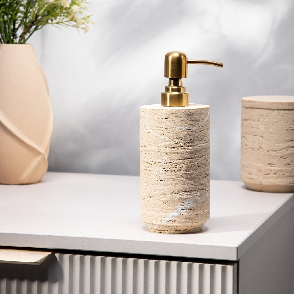 - Dávkovač NAIA je stylový doplněk, který do vašeho interiéru vnese nádech elegance inspirovaný přírodou. Jeho povrch s efektem přírodního kamene potěší nepravidelným vzorem a jemnými béžovými barvami. Skvěle se hodí k moderním i klasickým aranžmá.