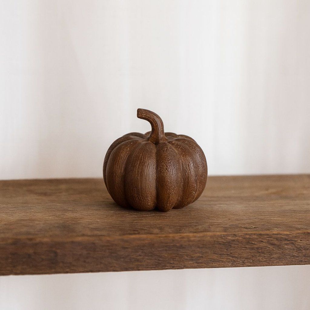 - ✨ Dekorační dýně hnědá z polyresinu – 6 x 7 cm