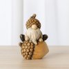 - Dekorace je detailně zpracovaná – trpaslík má výrazný plnovous a čepici ve tvaru žaludu, na které sedí, což podtrhuje její sezónní charakter.