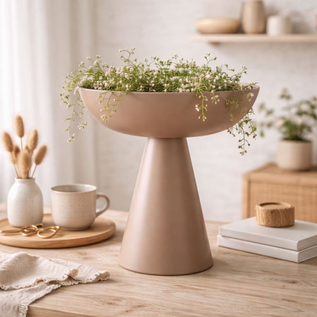 - Jemně matný povrch v teplém neutrálním odstínu působí klidně a elegantně, zatímco vyvýšená konstrukce dodává podnosu lehkost a vizuální originalitu.