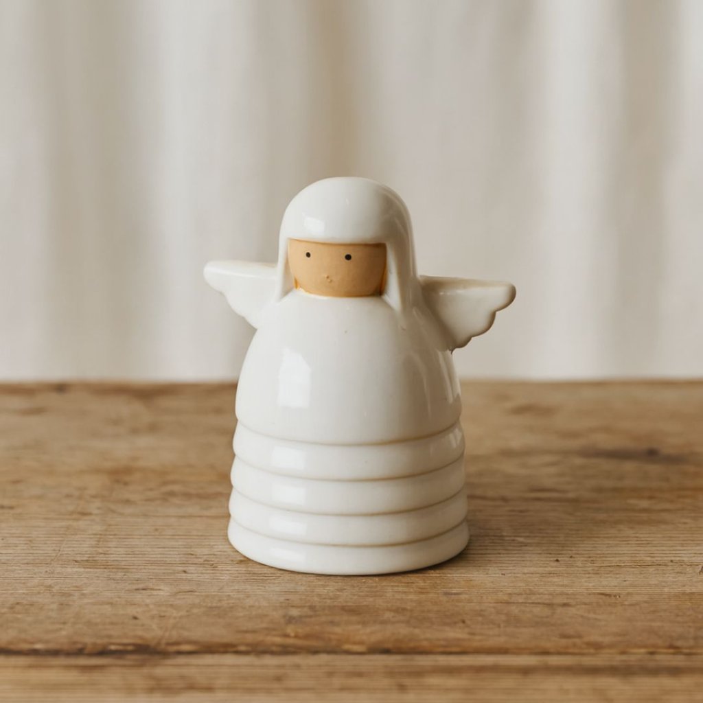 - Keramický anděl v matně lesklé bílé barvě s decentním obličejem a jednoduchými tvary zapadne do každého interiéru, ať už upřednostňujete moderní minimalismus nebo útulný severský styl.