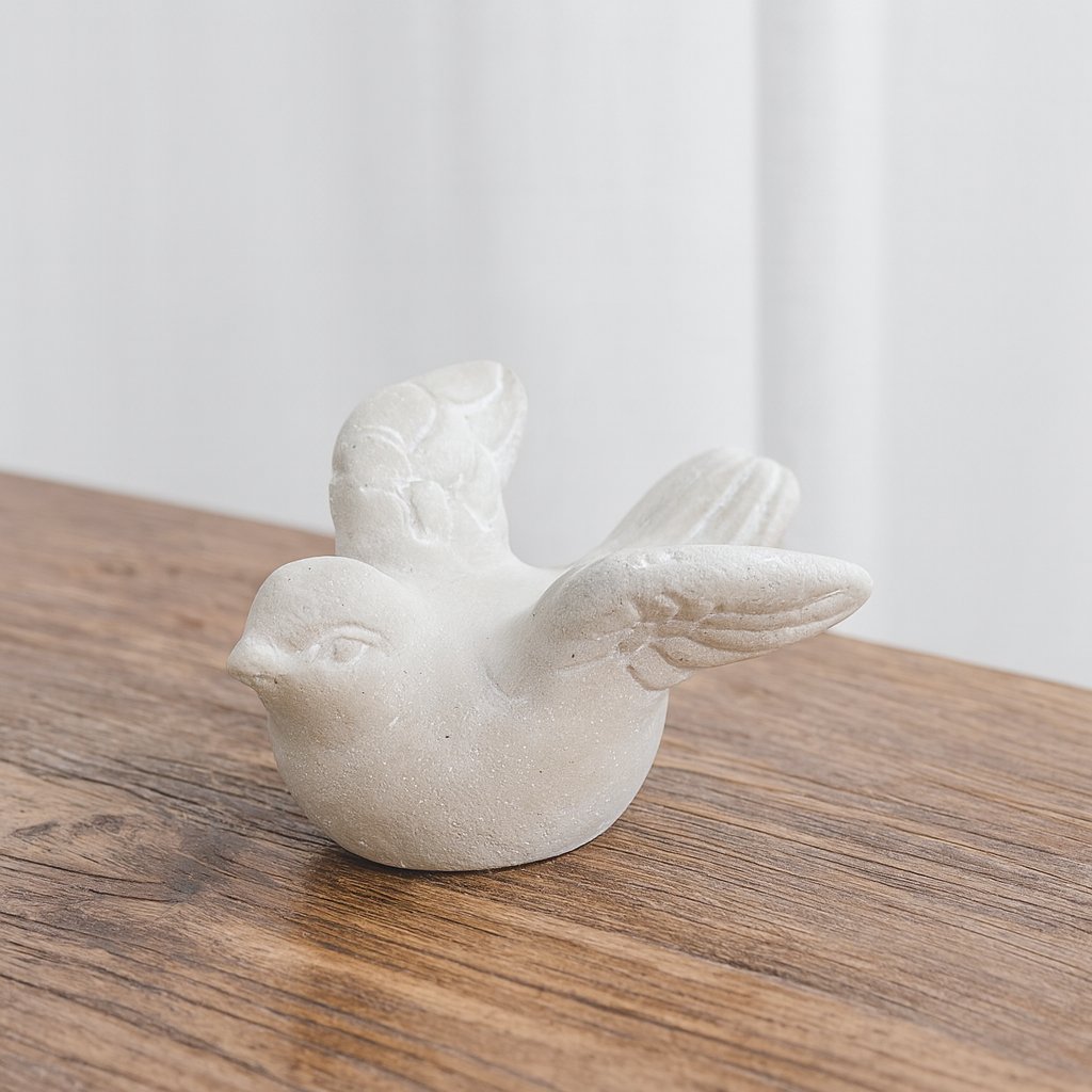 - Tento malý betonový ptáček není jen obyčejná dekorace – je to symbol pohody a jednoduché krásy.