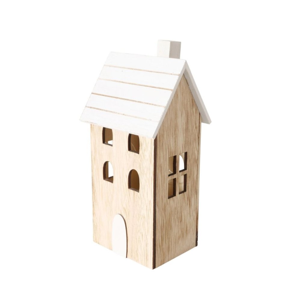 - Tento půvabný dekorativní domek je vyroben z přírodního dřeva s bílými detaily ve skandinávském stylu.