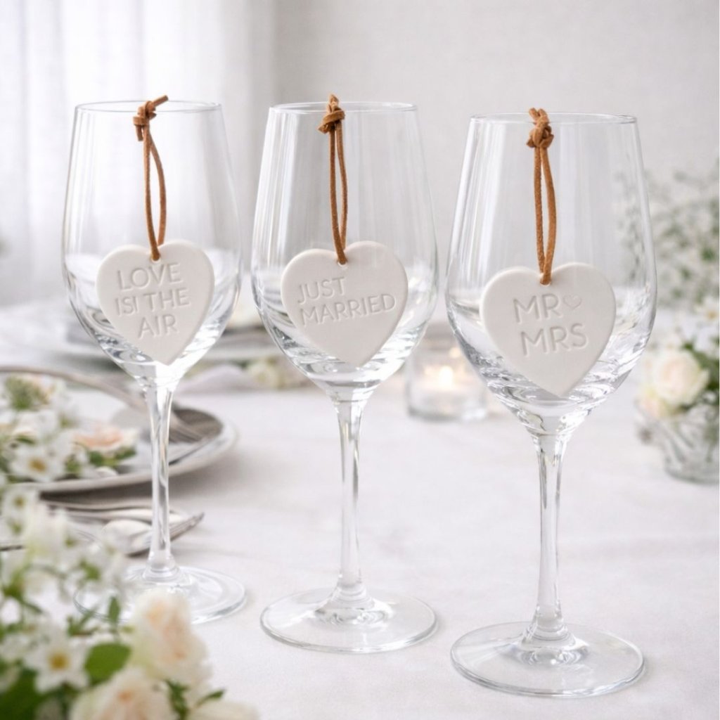 - Jemná porcelánová srdíčka se svatebními nápisy jsou krásným symbolem lásky, radosti a nových začátků.
