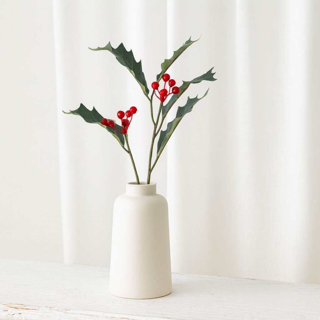 - Elegantní větvička s realistickými listy a lesklými červenými bobulkami je dokonalým doplňkem pro vaše zimní a vánoční aranžmá.