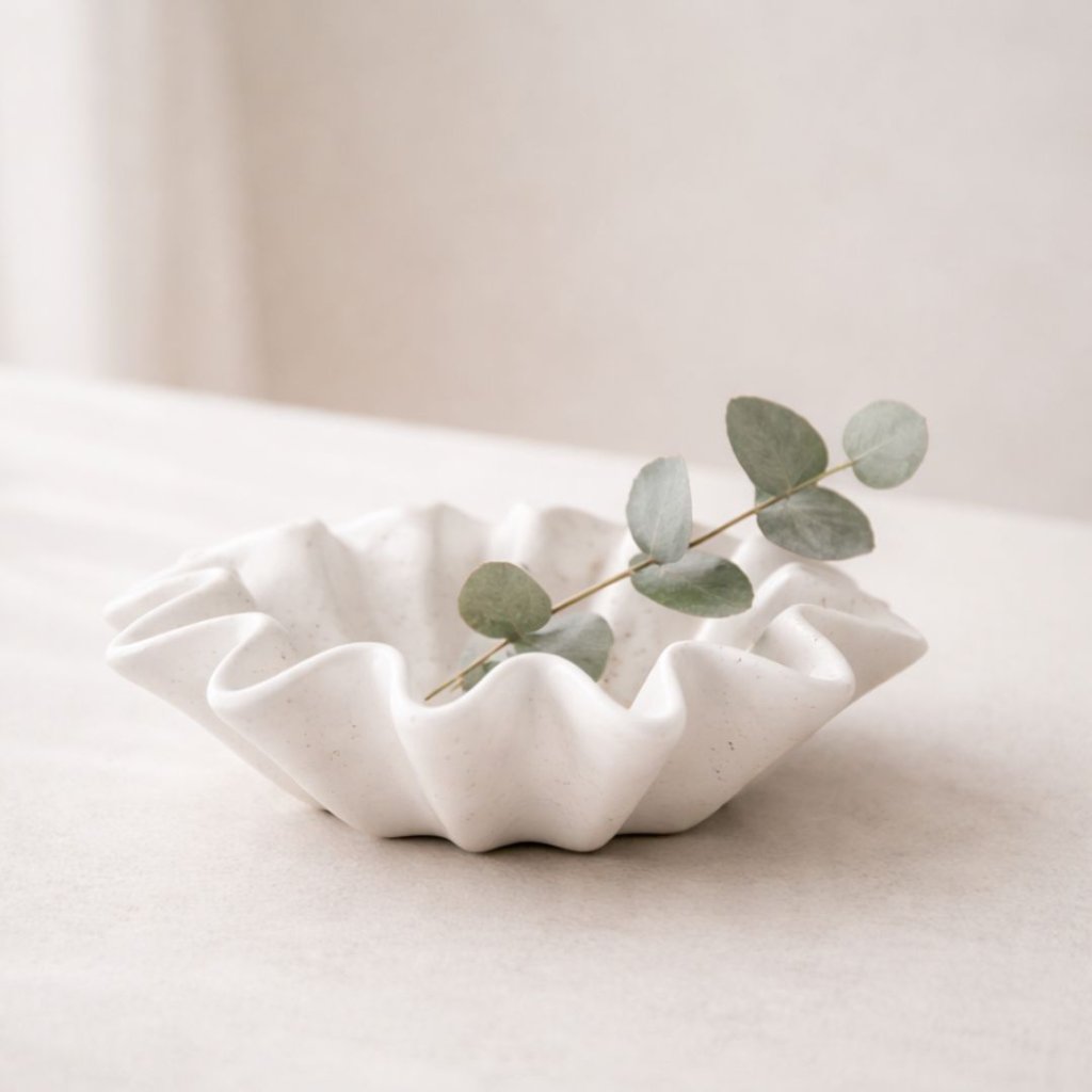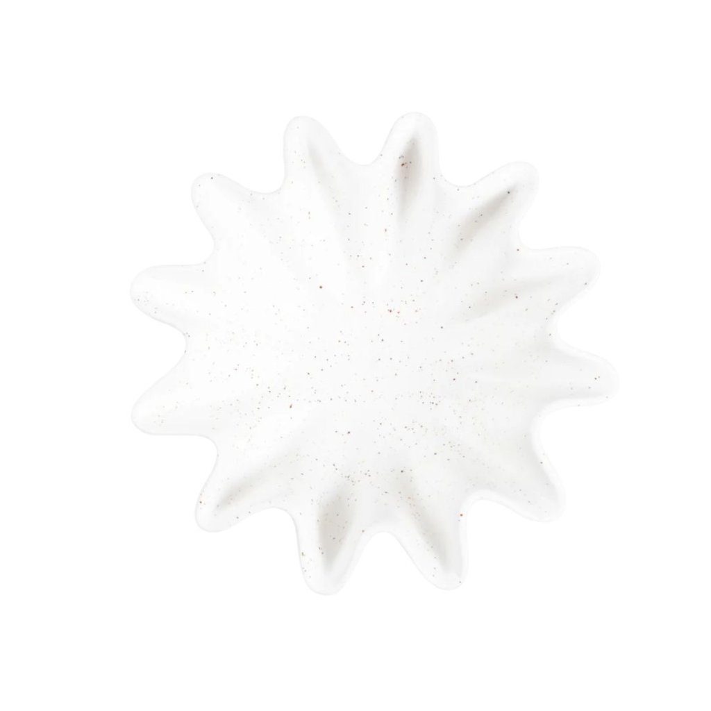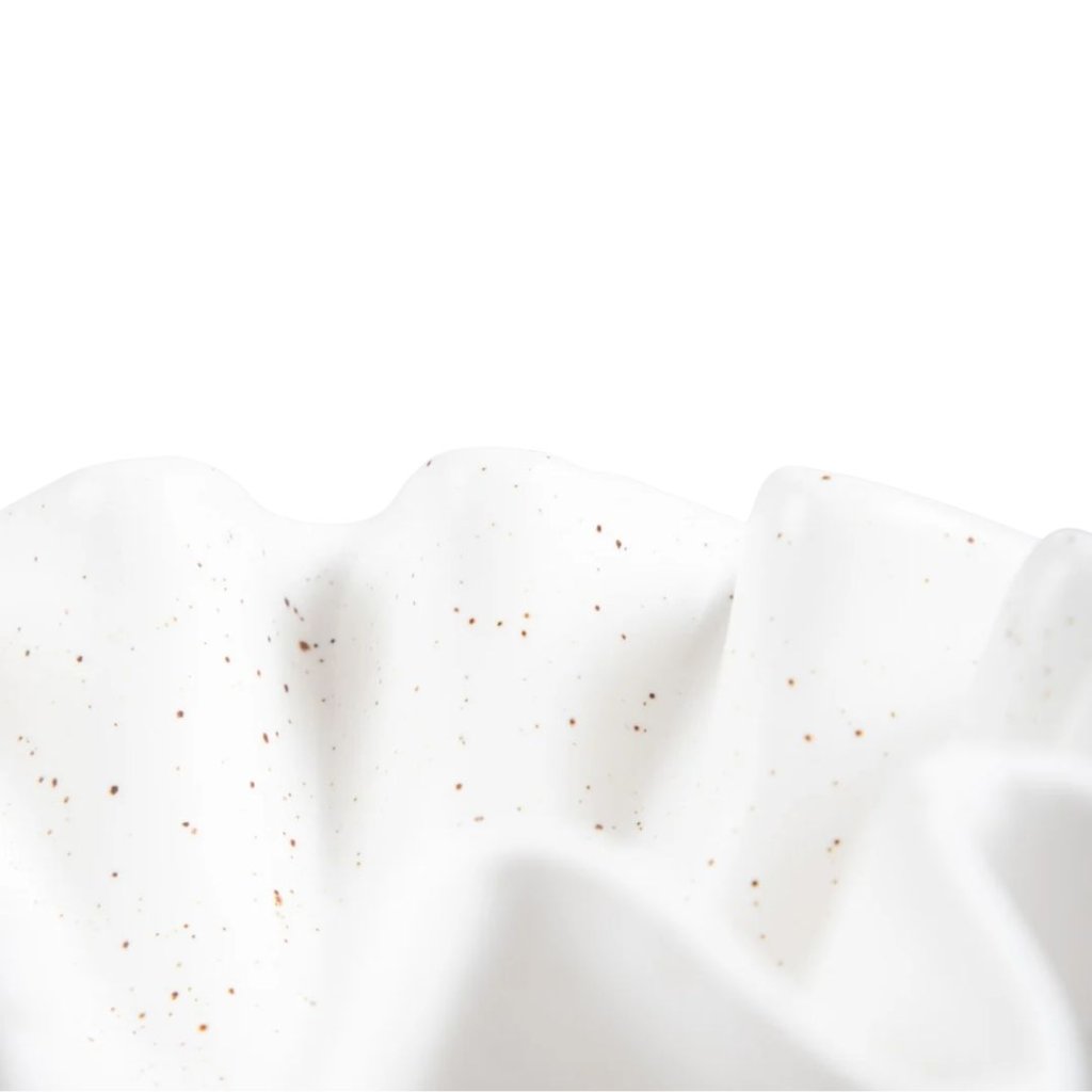 - Lehkost tvaru, která připomíná rozvlněnou látku nebo okraj květu. Miska Tutto zaujme čistou bílou barvou s jemným tečkováním a organickými liniemi, které v interiéru působí klidně a přirozeně.