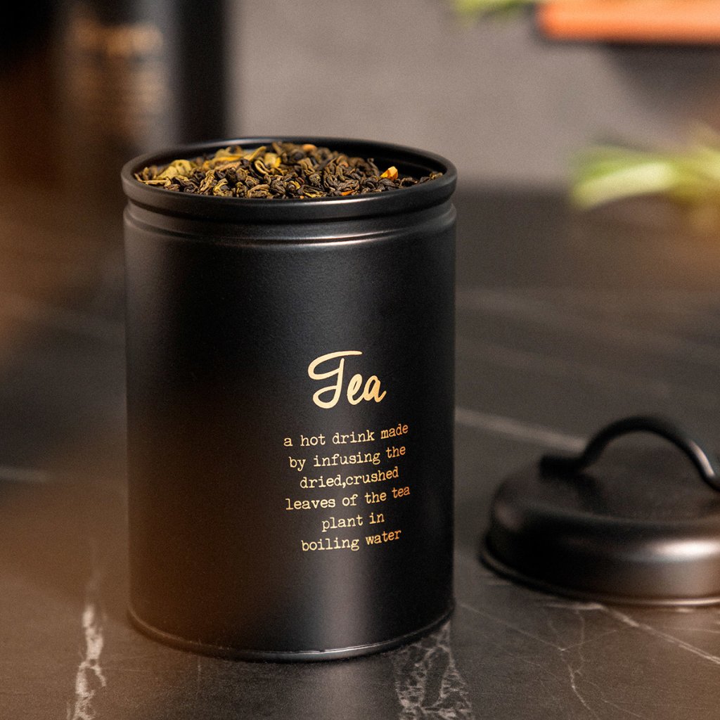 - Text na přední straně hravě popisuje, co je čaj – a dodává dóze originální charakter.