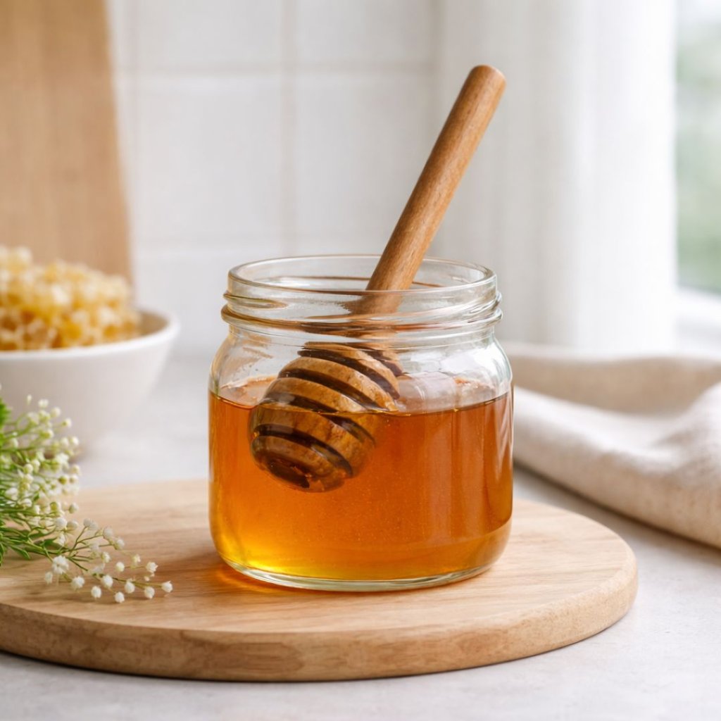Přírodní akáciové dřevo krásně doplní kuchyň a usnadní nabírání medu bez zbytečného kapání.