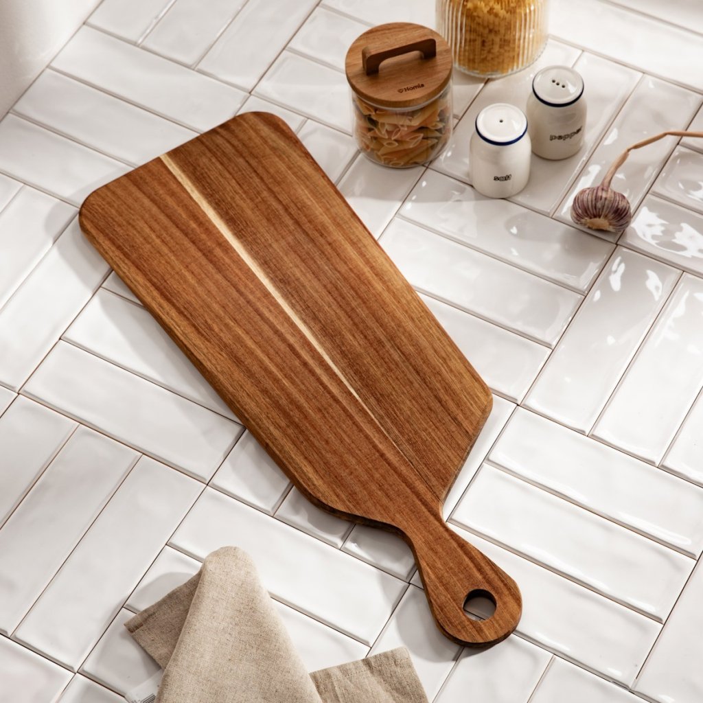- Robustní, praktické a krásně přírodní dřevěné prkénko Mokka s rukojetí v XXL velikosti je ideální pro servírování, krájení i jako stylový doplněk na kuchyňskou linku.