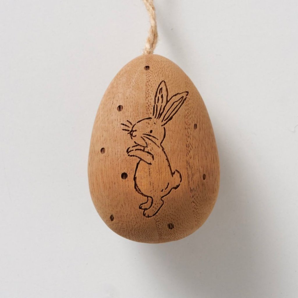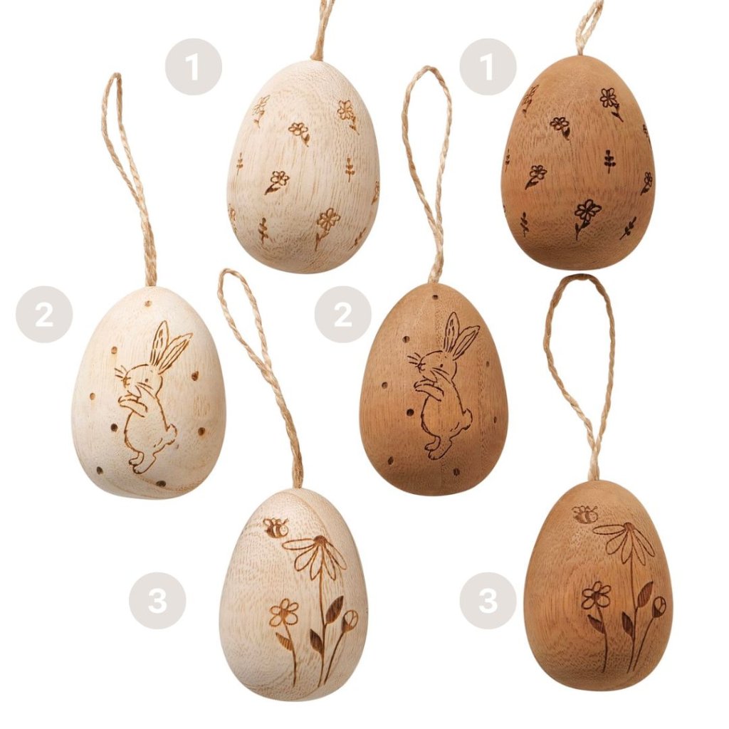 - Závěsné dřevěné vajíčko s květinovým nebo zajíčkovým motivem představuje půvabný doplněk pro vaši velikonoční výzdobu.