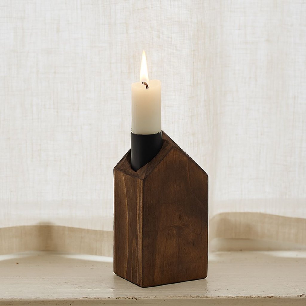 - Domek můžete využít jako svícen na kónickou svíčku nebo jako dekoraci, která dodá Vašemu domovu nádech přírody a vůni dřeva.