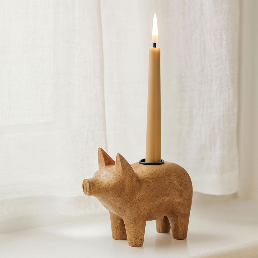 - Když se spojí přírodní materiál, skandinávský cit pro detail a hravý design, vznikne svícen, který potěší každé oko – i duši. Tento roztomilý dřevěný svícen ve tvaru prasátka od značky Wikholmform je nejen krásným doplňkem, ale i symbolem štěstí a radosti.