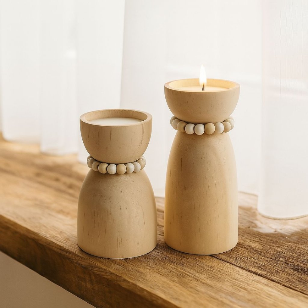 - Dřevěný svícen Kian z borovicového dřeva o výšce 14 nebo 17 cm v přírodní barvě bude zdobit vaší krásnou domácnost.
