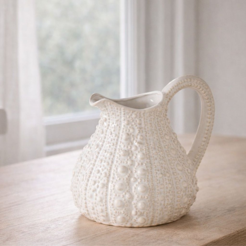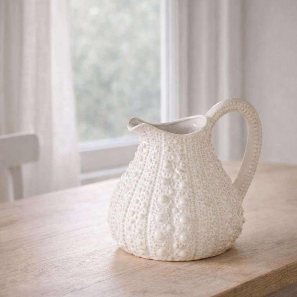 - Jemný kameninový džbán, který na stole působí klidně a přirozeně, jako by tam patřil odjakživa. Krásně doplní prostřený stůl, jarní květiny i obyčejné chvíle, kdy si chcete domov jen tiše užít. Nadčasový kousek, který dělá atmosféru.