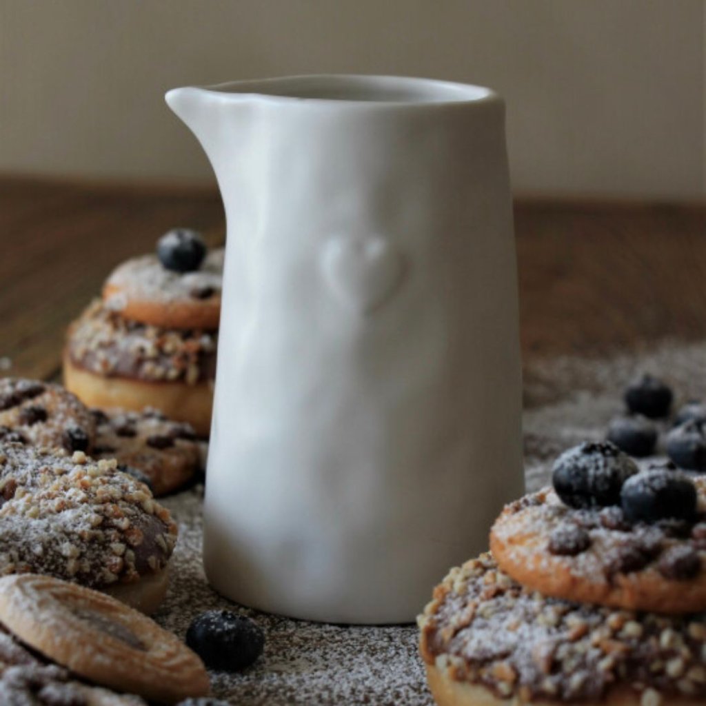 Džbánek na mléko nebo smetanu na kávu a čaj. Tento praktický džbánek se srdce v roztomilém designu najde spoustu využití nejen v kuchyni ale i jako váza na květiny. Jednoduchý džbán na mléko se stane základním kouskem vaší kuchyně. Hodí se do jakýchkoliv interiérů kvůli svému nadčasovému vzhledu, bílé barvě.