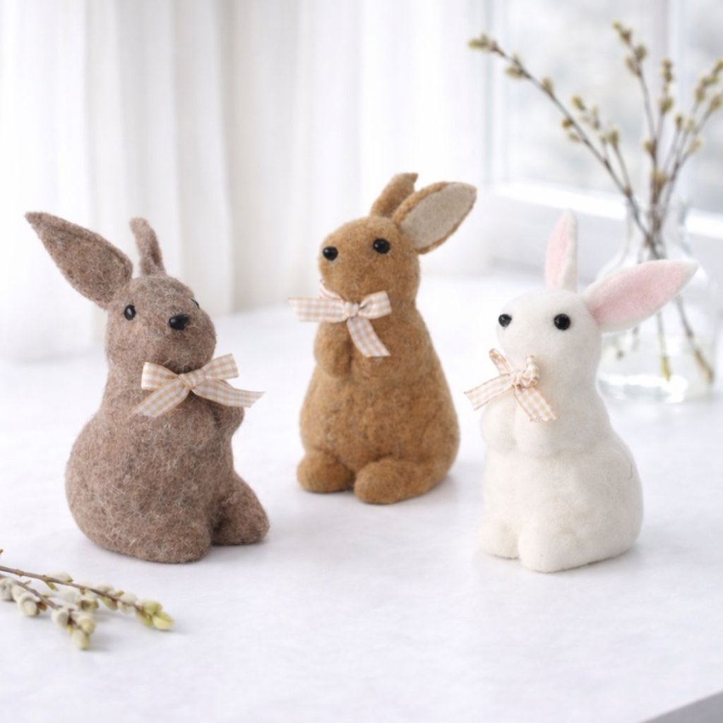 Na výběr máte ze tří barevných variant – béžový, hnědý a bílý zajíček, každý s roztomilou mašličkou ve vzoru kostky.