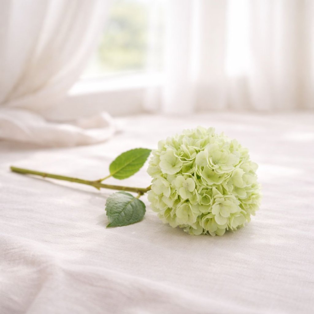 - Dekorativní větev umělé zelenkavé hortenzie