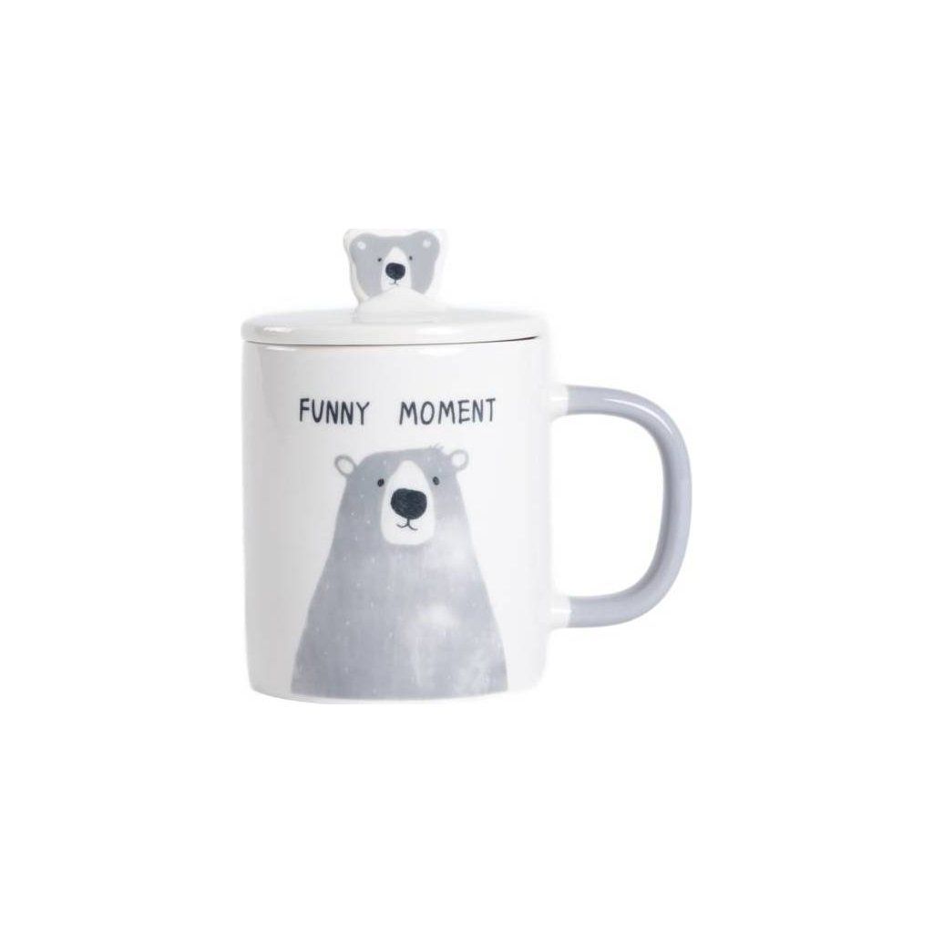 Hrnek Batis s šedým medvědem a porcelánovým víčkem 0,35 l