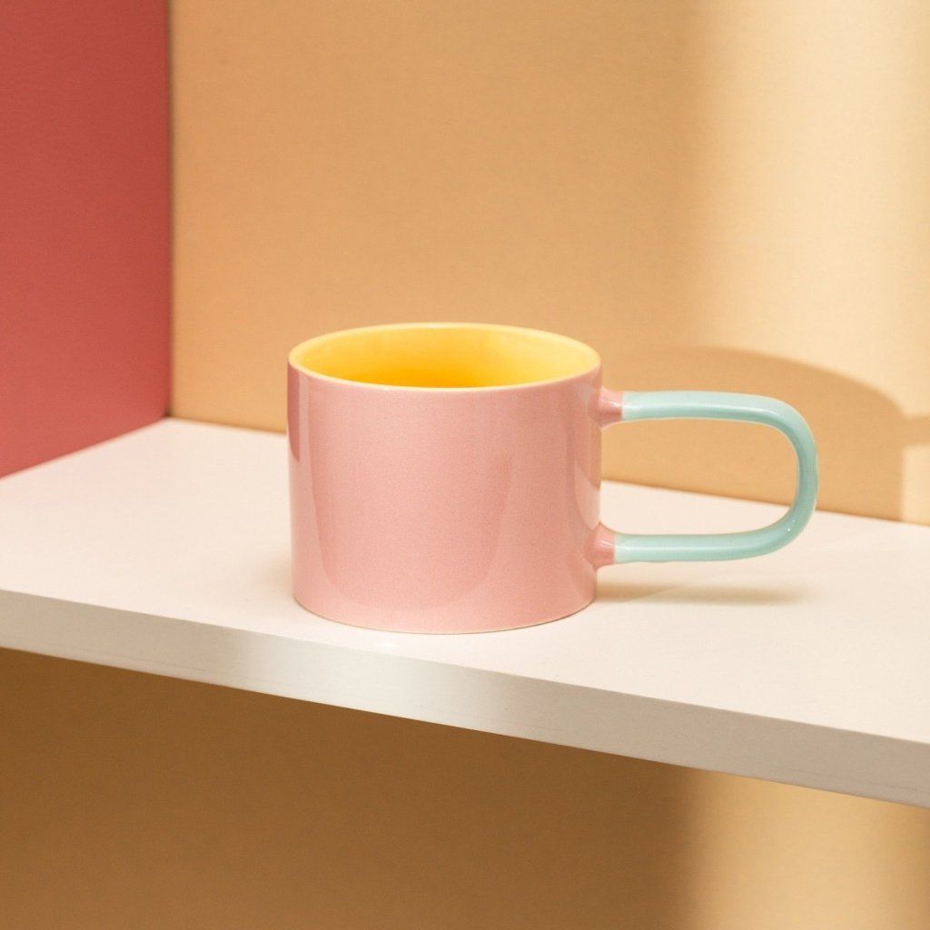- Hrnek ve světlých, pastelových barvách se vyznačuje minimalistickým designem a originálním tvarem. Bude krásně vypadat na jídelním stole nebo na kuchyňské lince.