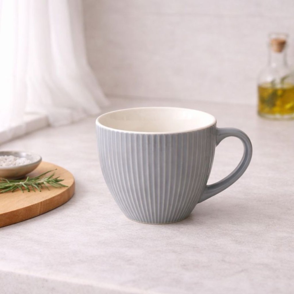 - Jemně rýhovaný šedý hrnek, který si rychle oblíbíte pro každodenní chvíle klidu. Padne krásně do ruky a díky většímu objemu je ideální na ranní kávu, čaj i odpolední cappuccino. Jeho jednoduchý moderní vzhled se snadno kombinuje s jakýmkoliv stylem kuchyně a působí čistě a nadčasově.