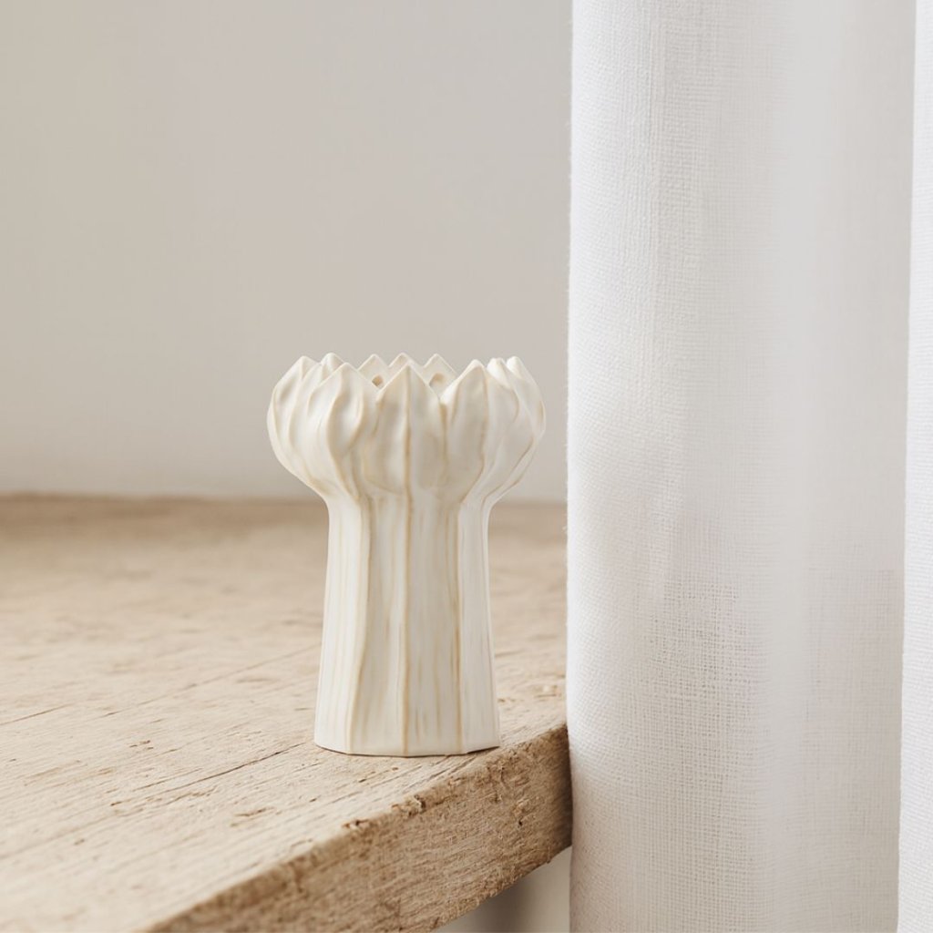 - Minimalismus, charakter a ruční kouzlo v jednom. Tato kameninová váza ve smetanovém odstínu od švédské značky Wikholmform vynikne sama o sobě i s jemnou květinou.