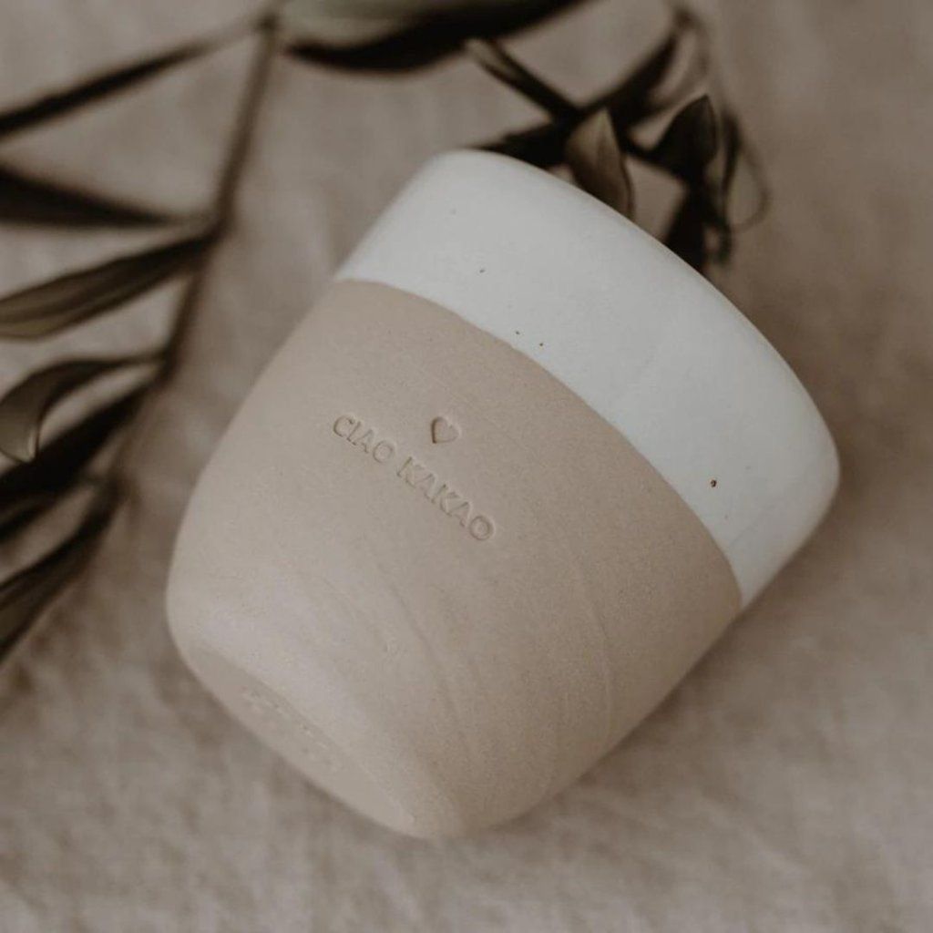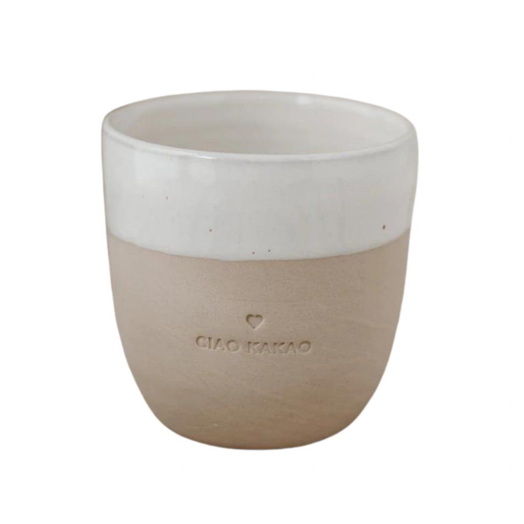 Hrnek z glazované keramiky a nápisem Ciao Kakao vám bude sloužit při vašem stolování a při každém pohledu bude dělat jen radost.