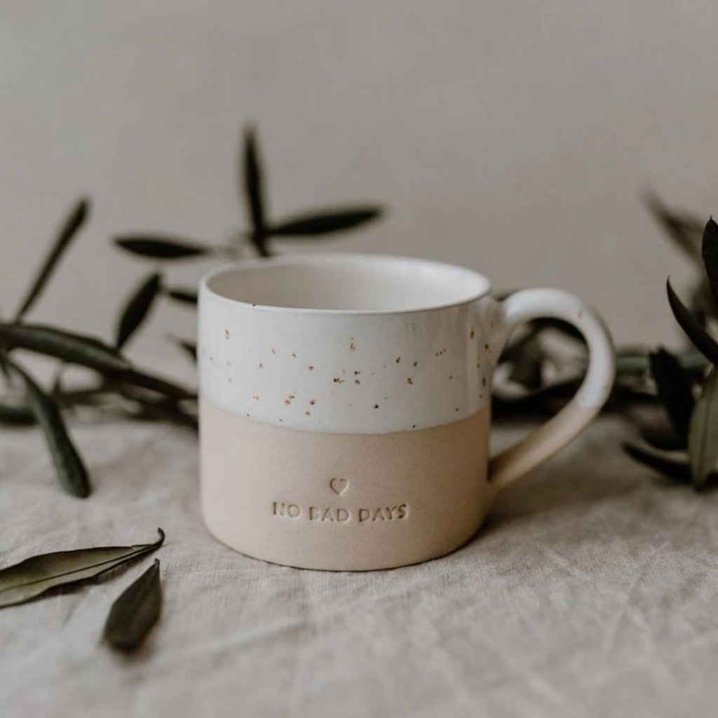 Hrnek z glazované keramiky a nápisem No Bad Days vám bude sloužit při vašem stolování a při každém pohledu bude dělat jen radost.