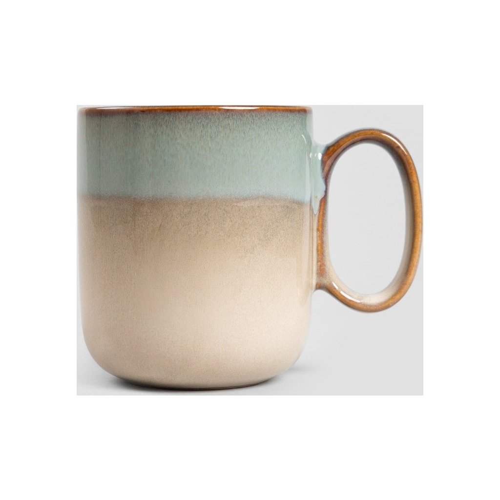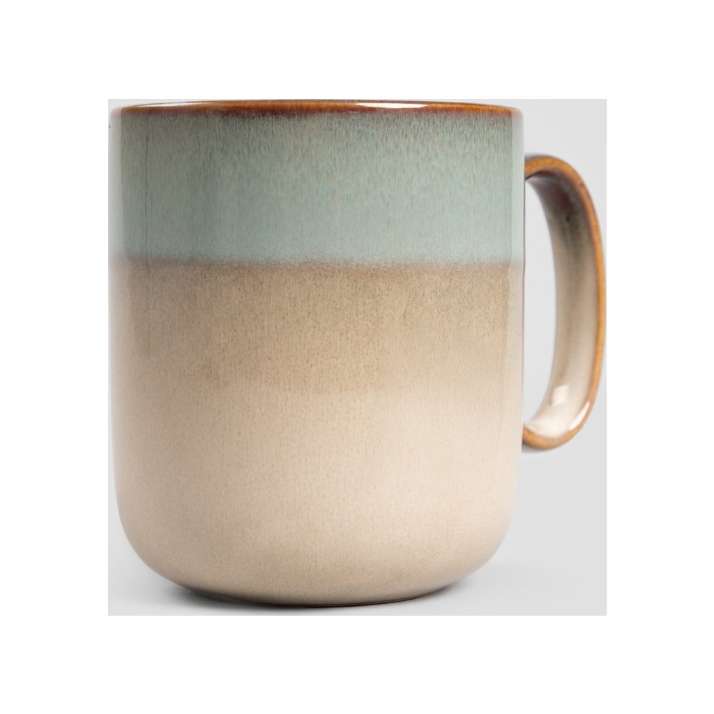 - Přírodní krása v jemných tónech. Tento kameninový hrnek v teplé béžové barvě s elegantním tyrkysovým okrajem spojuje rustikální styl s moderní estetikou.