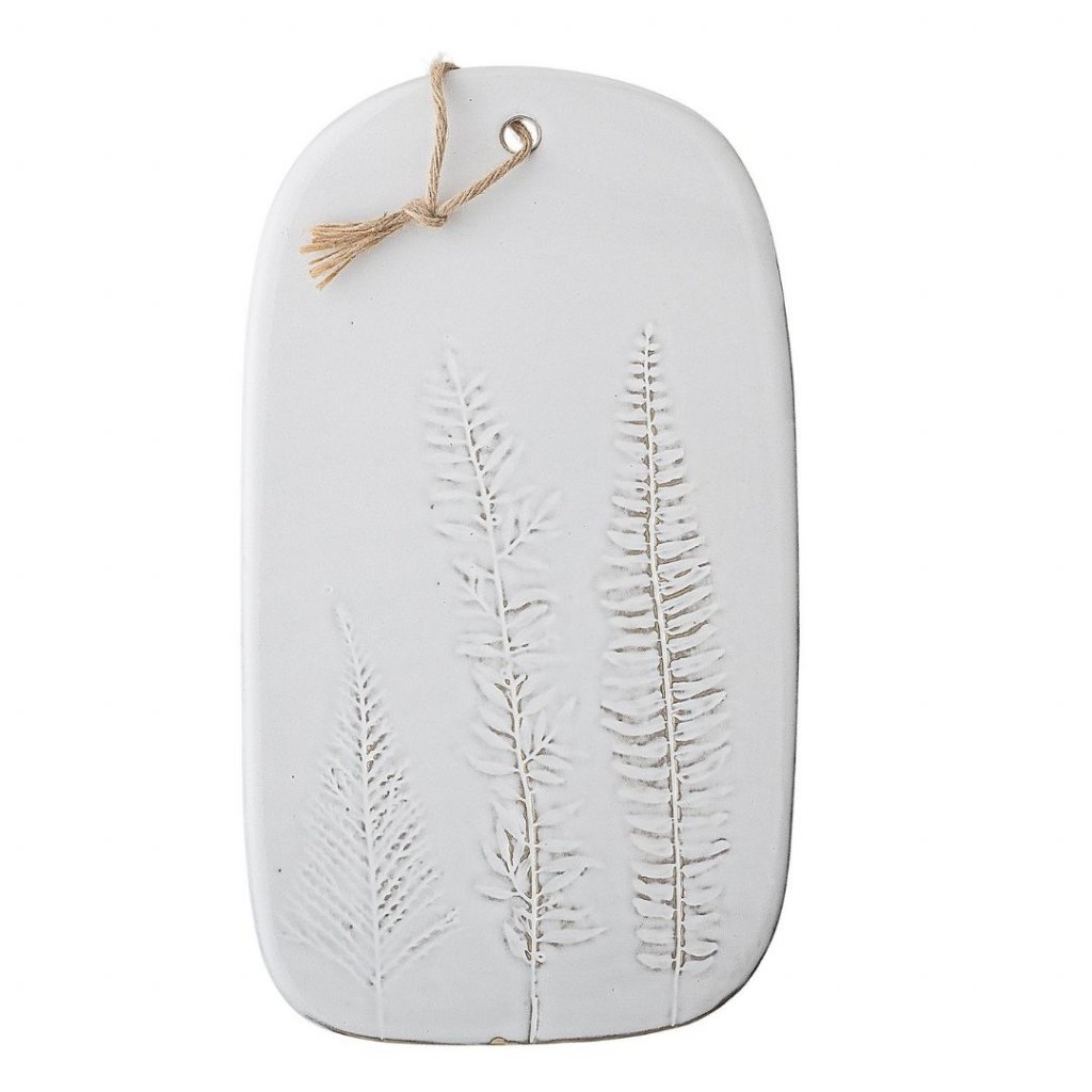 Kameninový minimalistický servírovací podnos,kde k vytvoření otisků kapradin byly použity skutečné listy.Dekorativní jutový provázek slouží k zavěšení.Ručně tvořený podnos od značky Bloomingville udělá doma velkou parádu.