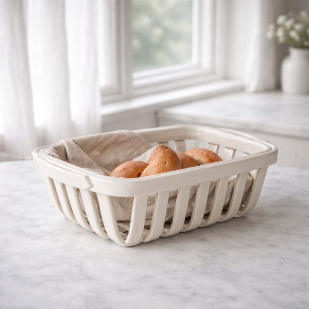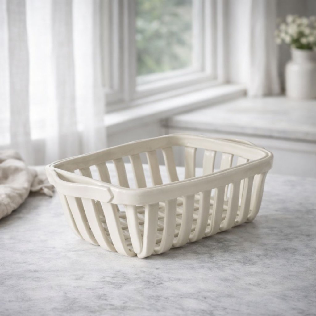 Světlounce šedá, klidná a nadčasová. Jemná keramika, která nechá vyniknout to, co do ní vložíte – od pečiva přes ovoce až po malé kuchyňské rituály. Nenápadný kousek, který dělá domov domovem. - Rozměry: 24 × 15,4 × 7,5 cm