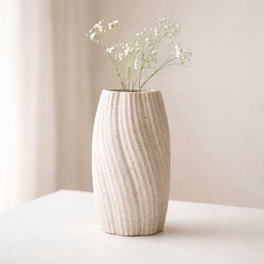 - Váza působí dekorativně i samostatně, s několika větvičkami nebo jemnými květinami ale vytvoří harmonické a klidné aranžmá v duchu přirozené jednoduchosti.