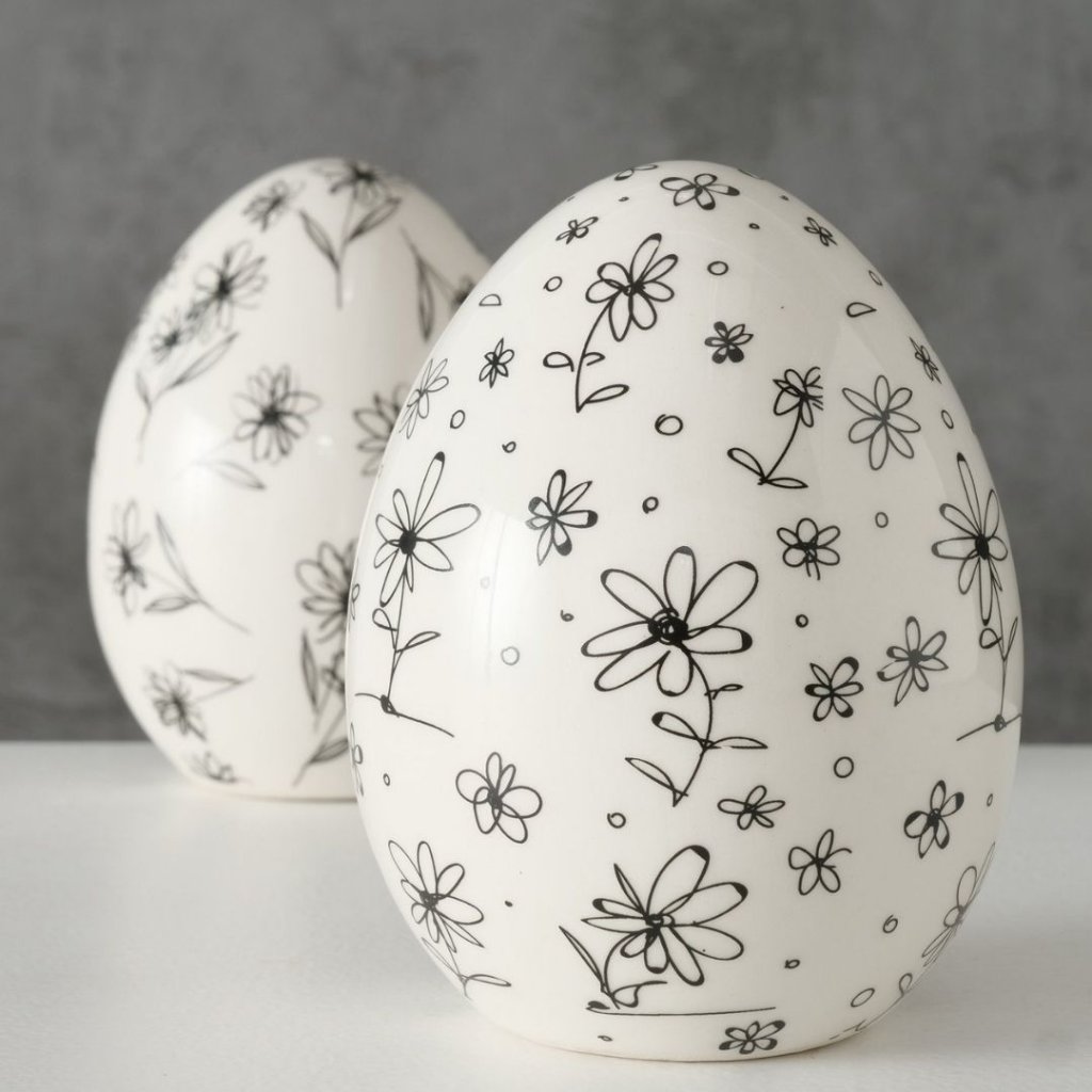 Keramické krásné bílé vejce s černými květinami ve dvou variantách, kdy ta první má jen větší květiny a druhá varianta je, že vajíčko má květiny maličké i větší. Stylová dekorace z keramiky, která vám dlouho vydrží.