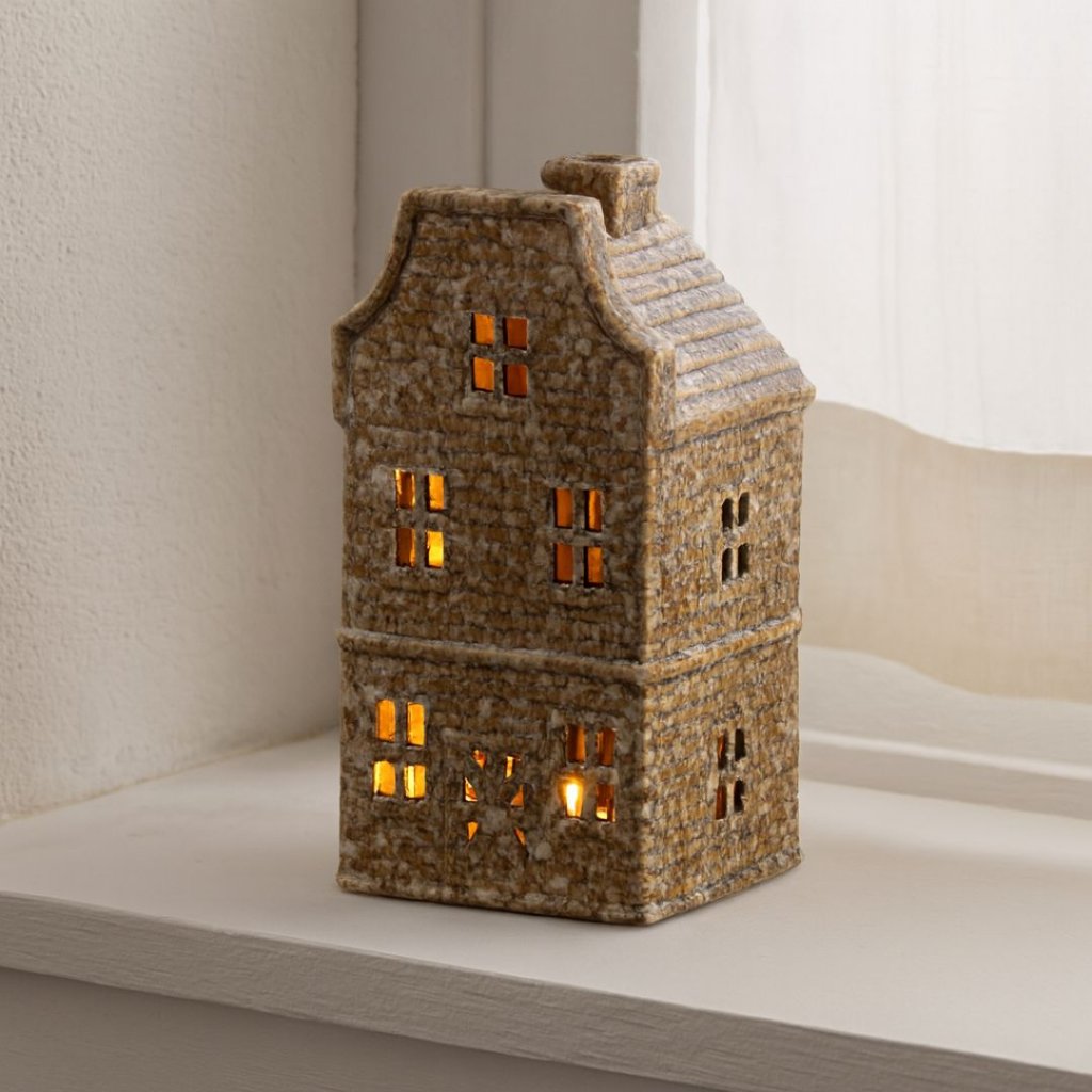 - Náš LED domek z hnědé keramiky vnese do vašeho interiéru hřejivou atmosféru, ať už ho postavíte na parapet, poličku nebo sváteční stůl.