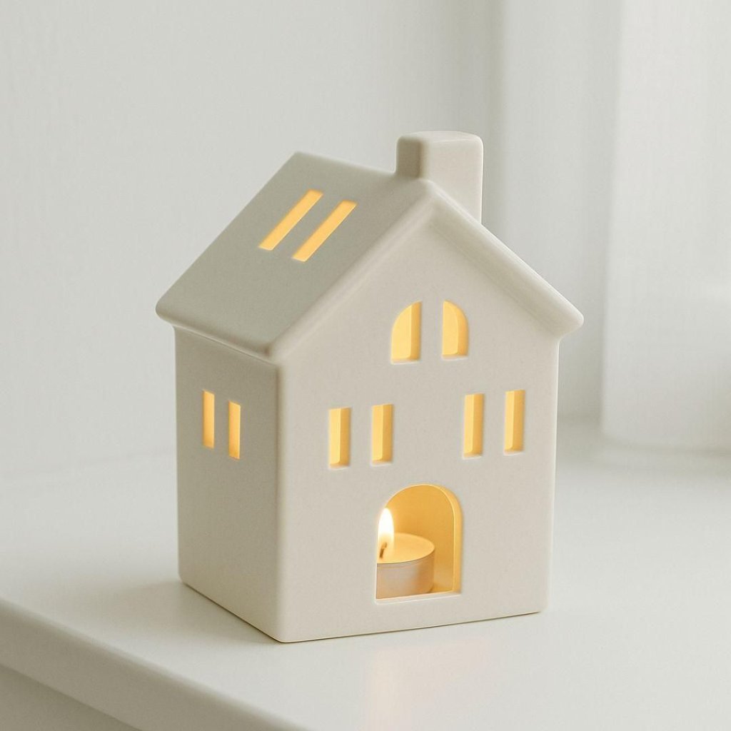 - ✨ Keramický svícen bílý domek Sixi - 17,5 × 7 × 6 cm