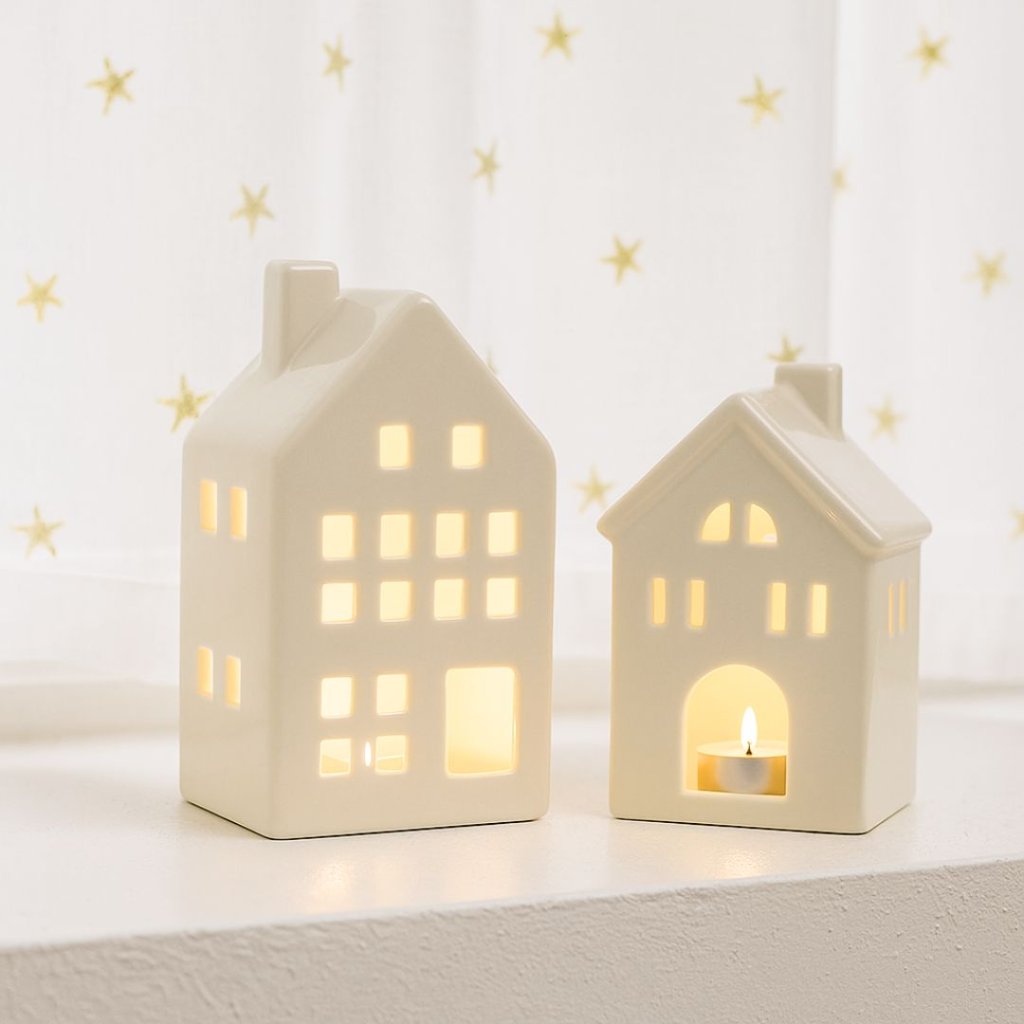 - ✨ Keramický svícen bílý domek Six - ( ve velikosti S a XL )14 × 8,5 × 5,5 cm / 20,5 × 10,5 × 10 cm