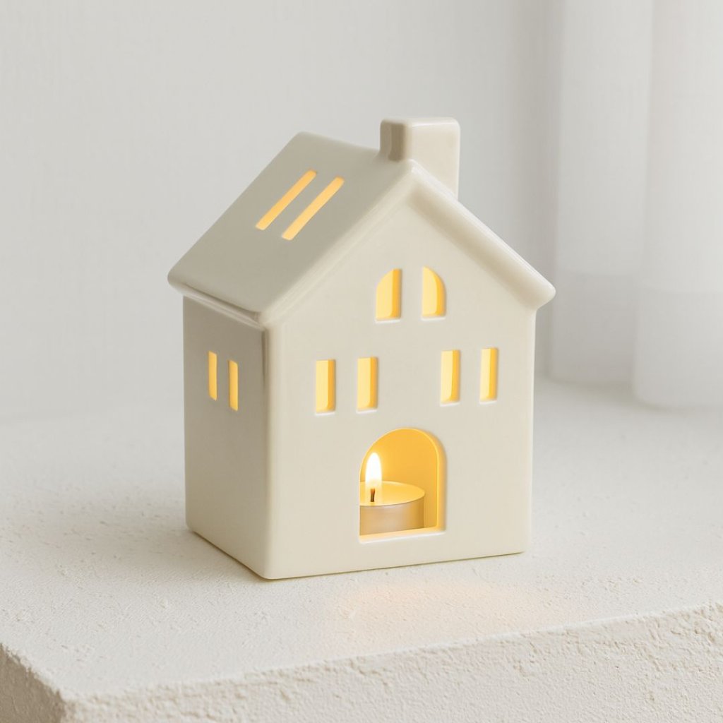 - ✨ Keramický svícen bílý domek Six - 14 × 8,5 × 5,5 cm